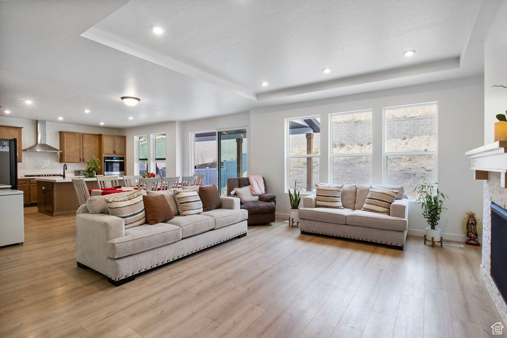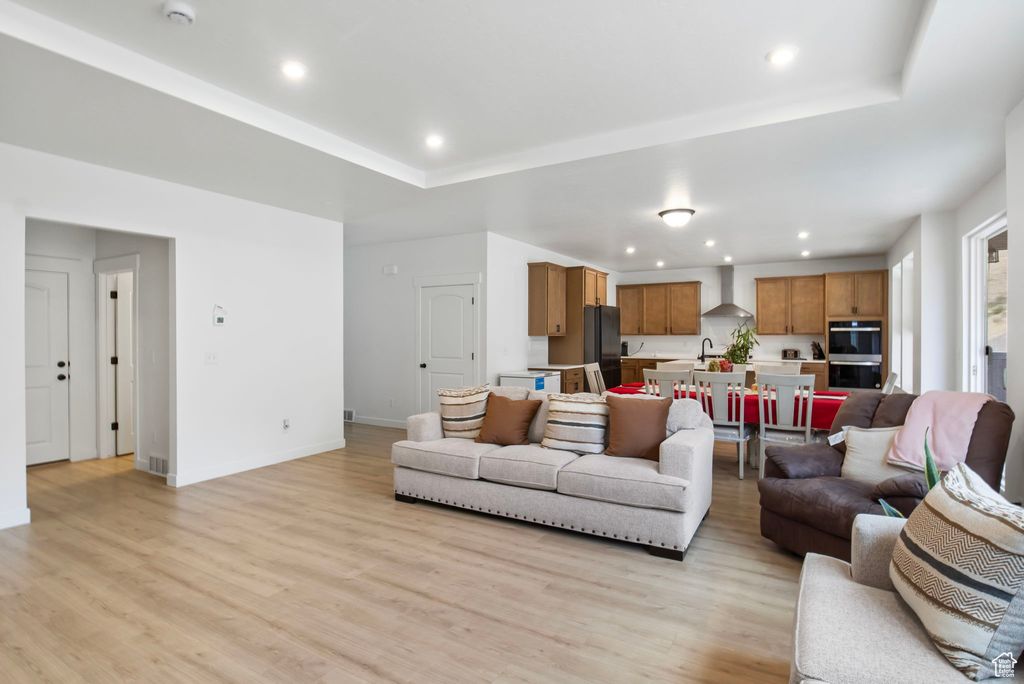 Welcome to your dream home, nestled on the mountainside with breathtaking views of Utah valley below. This spacious 5 bedroom, 4.5 bath home offers the perfect blend of comfort, style, and functionality. Enjoy an open concept layout upstairs and in the fully finished basement. Creating the perfect space for entertaining, gathering or relaxing. The kitchen and family room flow seamlessly together, featuring beautiful wood laminate flooring that adds warmth and elegance. Spacious open basement features two large bedrooms, including a second primary suite with attached bathroom, walk-in closet and laundry. A second full bathroom adds convenience and functionality. The oversized 2 car garage not only accommodates vehicles but also offers abundant storage for outdoor gear, motorcycles, tools and more. You'll enjoy the serenity of nature while relaxing on your covered back patio with no homes directly behind for peace and privacy to relax or entertain year-round. Conveniently located close to schools, shopping and community amenities. This home is move in ready so schedule your private showing to own a piece of mountain side paradise. Home is sold as is. Sq. ft. figures are provided as a courtesy estimate only and were obtained from county records. Buyer is advised to obtain an independent measurement. Must have an appointment.