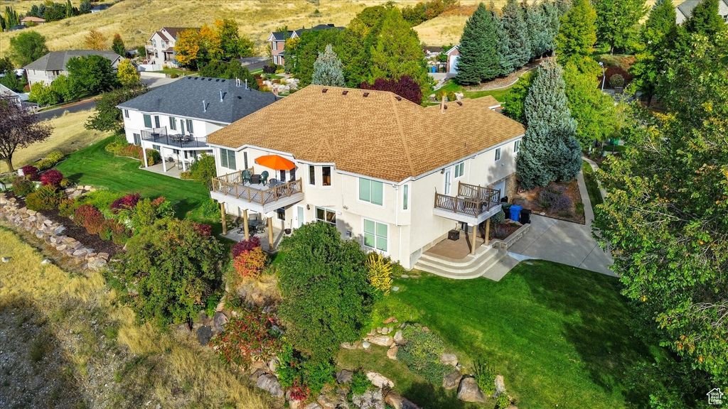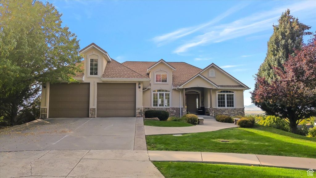 Tucked away on a quiet cul-de-sac in one of the area's most desirable neighborhoods near beautiful Gibbons Park, this home combines quality craftsmanship with thoughtful updates and smart-home conveniences. Enjoy breathtaking eastern views of lower Mt. Logan and some of the best valley views from almost every room. The home features elegant 8-foot solid-core doors upstairs, large windows that flood the interior with natural light, and solid cherry kitchen cabinets complemented by a newer dual-fuel range and a new (2024) GE refrigerator/freezer. Smart upgrades include Lutron lighting controls, a smart thermostat, and two newer garage door openers with myQ app connectivity. The open walkout basement extends the living space and offers sweeping views, a wired surround sound system (also on both decks), and access to spacious outdoor entertaining areas. Additional highlights include a heated workshop, epoxy-finished garage floor, dedicated office/den spaces on both levels-perfect for remote work or quiet study. Surrounded by unique, mature trees, this home offers both privacy and beauty in a truly exceptional setting.