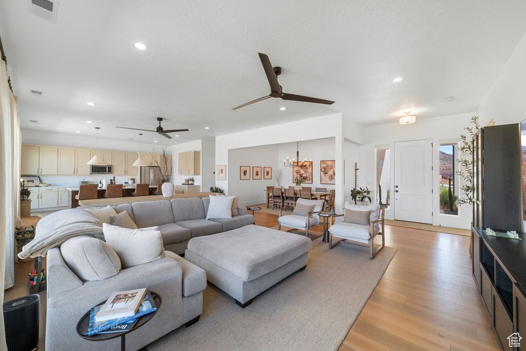Beautifully maintained single-level home in the sought-after Shooting Star community! Inside, you'll find rich hardwood flooring, a spacious great room perfect for entertaining, and an updated kitchen. The oversized garage features a clean epoxy finish, and there's even dedicated RV parking for your toys or trailer. The real showstopper? Forever views of Pine Valley and the surrounding natural beauty-completely unobstructed. Whether you're enjoying a quiet morning or hosting friends for sunset, the view is unbeatable. Located just minutes from excellent elementary school, this home offers the perfect blend of function, beauty, and location.