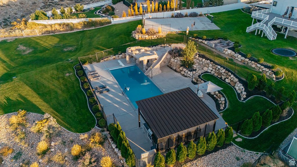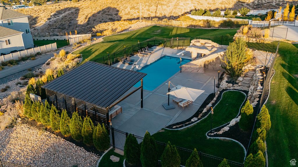 The Ultimate Hangout House! This one-of-a-kind home sits on a full acre with unbeatable 270 views of all North Utah County-and it's built for fun! Out back you'll find a massive 20' x 40' pool, a full-size basketball court, and even your own baseball diamond. Whether it's pool parties, pickup games, or summer BBQs, this backyard was made for memories. Inside, everything feels fresh and updated with new paint, gorgeous hardwood floors, new quartz countertops, and over $50K in top-of-the-line Andersen windows that let in tons of natural light. Automated drop-down shades on the main floor and in the master make life super easy (and super cool). This is the kind of house where everyone wants to be. From epic parties to cozy nights taking in the view, it's a place that truly has it all. Come see it-you won't believe it until you do! WAIT UNTIL YOU SEE THE VIEW ON THE 4TH OF JULY! Agents related to seller.