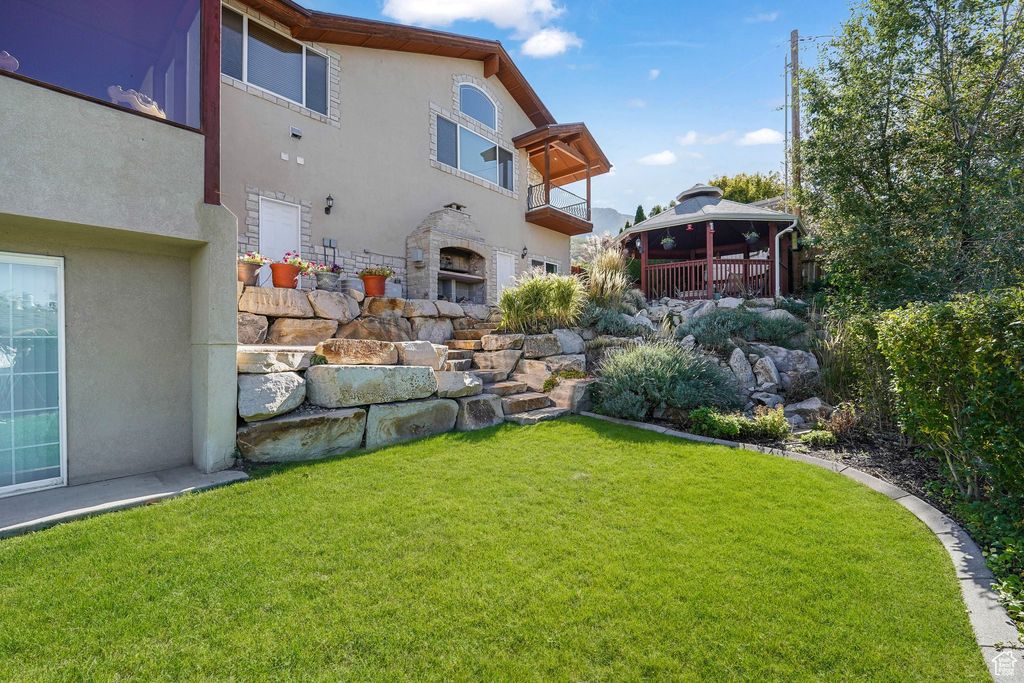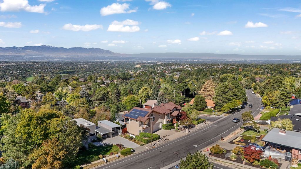Nestled in the coveted Top-of-the-World neighborhood of Cottonwood Heights, this stunning home captures panoramic views of both the mountains and the city. With quick access to nearby trailheads and Little Cottonwood Canyon, it's perfectly positioned to enjoy mountain living. Completely renovated down to the studs in 2011, this 6-bedroom, 6-bath residence with an office combines thoughtful design and comfort throughout. The spacious kitchen-complete with a wine fridge-flows seamlessly into the sunroom, creating the perfect space for entertaining while soaking in breathtaking city views. Outside, the patio features a rotisserie fireplace, a gas fireplace beneath the gazebo, and the peaceful sound of a waterfall for a truly relaxing outdoor retreat. Upstairs, every bedroom has balcony access. The two north-facing rooms feature custom turrets with 270-degree views of the mountains and city, complemented by built-in desks ideal for reading or study. A third bedroom with an en suite bath offers an inviting space for guests. Through the study lies the primary suite, set on its own level for ultimate privacy. With hardwood floors, vaulted wood ceilings, and massive east- and west-facing windows, it feels like a private sanctuary in the sky. Enjoy the sunrise from the "coffee deck" and the sunset from the "wine deck", both offering incredible views. A double-sided fireplace adds warmth to both the bedroom and the en suite bath, which includes a jetted tub, dual vanities, dual walk-in closets, and a large shower with two showerheads. The walkout basement includes two bedrooms with sliding glass doors, a fully equipped kitchen, a full bathroom, and a wine room. Practical upgrades include four HVAC units for zoned comfort, newer windows, paid-off solar panels, updated plumbing and electrical, a commercial-grade tankless water heater, and even a half bath with a urinal in the garage. The 4-car garage is extra deep, extra wide, and includes two extra-tall bays for larger vehicles. The exterior landscaping features a xeriscaped front entry and eight fruit trees-peach, pear, apple, plum, and cherry varieties. Every detail of this Cottonwood Heights retreat has been crafted for those who value space, comfort, and the beauty of Utah's natural surroundings-all just minutes from world-class recreation and city conveniences.