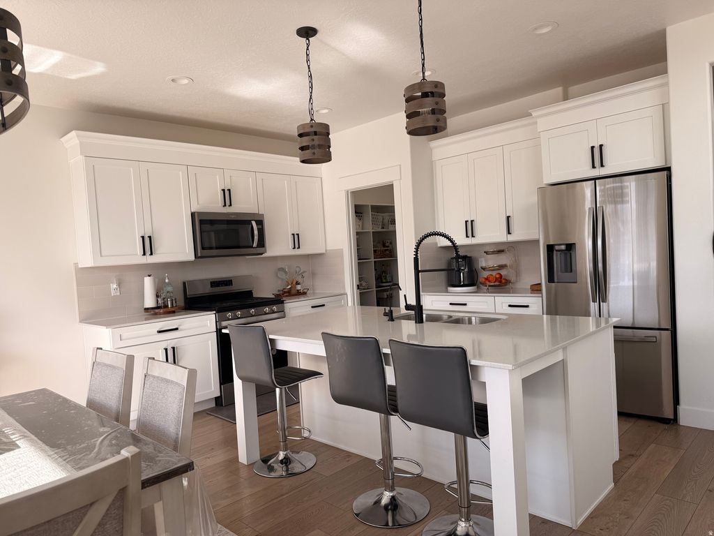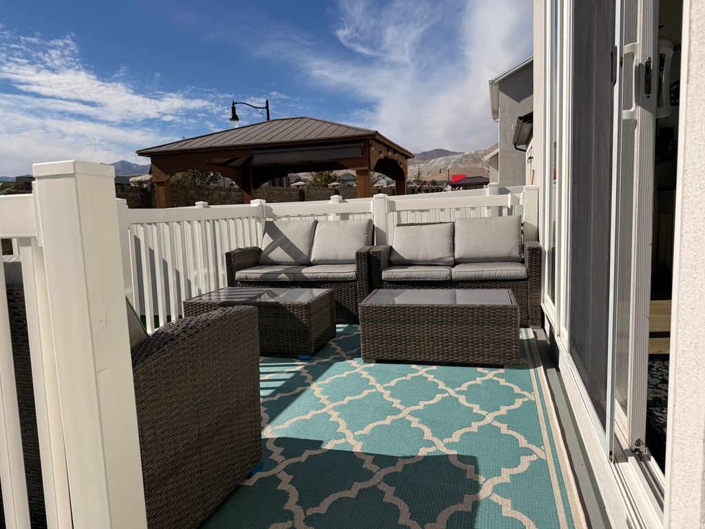 Discover this beautifully designed 5-bedroom, 4.5-bath home in Herriman, filled with natural light and modern finishes. The open-concept layout features vaulted ceilings, large windows, and a stunning kitchen with premium appliances and sleek cabinetry. The custom-finished backyard is perfect for relaxing or entertaining, complete with professional landscaping and a private gathering area. The walkout basement offers a rare opportunity - fully finished with two bedrooms, two bathrooms, and a full kitchen, ideal for guests, extended family, or additional rental income. Immaculate, bright, and thoughtfully crafted, this home combines comfort, versatility, and modern style in one of Herriman's most desirable communities.It has lots of Upgrades like Power Auto Blinds,Fire Pit, Gas line for BBQ,Extended Deck, Truff Grass all around, Fully fenced Yard, Extra Parking, Water softer and Radon System . TEXT AGENT FOR APPOINTMENT PLEASE. THX