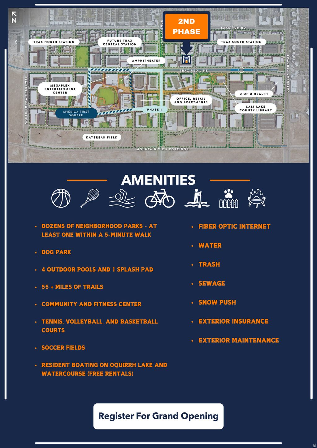 ELEVATOR + 360 VIEWS of Downtown Daybreak and the Wasatch Mountains from the rooftop deck make these condos truly stand out. Located in the heart of Daybreak-just steps from dining, shops, parks, and TRAX. Each home offers a bright open layout with sleek finishes, modern design, and elevator access to all four floors. Expansive windows provide stunning views of Downtown Daybreak and the Wasatch Mountains from inside the condos, filling the spaces with natural light. Newly designed floorplans showcase upgraded features throughout, delivering the perfect blend of style, comfort, and convenience.