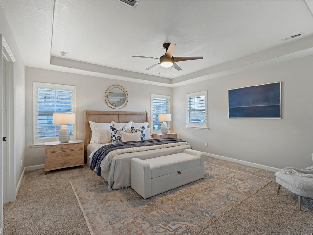Newly staged and with a freshly painted kitchen island, this home is immaculate and ready for new owners to move in and enjoy. Ideally situated on a large lot, the property features a south-facing front door and garage for easy snow clearing, and a north-facing rear that provides unobstructed mountain and valley views. Located in Lookout Ridge near Herriman Open Space, the home offers walkable access to three trailheads and Blackridge Pond. Recent upgrades include new hardwood flooring on the main level and upstairs hallway, a fully renovated kitchen with soft-close cabinetry, a quartz island countertop, and matte black granite countertops, plus a Trex deck off the kitchen with built-in lighting and smart interior and exterior lighting control. The basement wet bar features quartz countertops and two under-counter fridges-one for wine and one for beverages. The fully fenced backyard offers expansive lawn space, an in-ground trampoline, and a half basketball court, with plenty of room to add a pool or other amenities. Additional features include a private office, Klipsch 5.2.2 surround sound system, roller shades throughout, permanent holiday lighting, Ecobee thermostats, whole-home humidifier, water softener, reverse osmosis system, projector screen, and smart sprinkler controller. Agent is related to the owner. The property has not been occupied by the current owners, and no sellers disclosures will be provided.