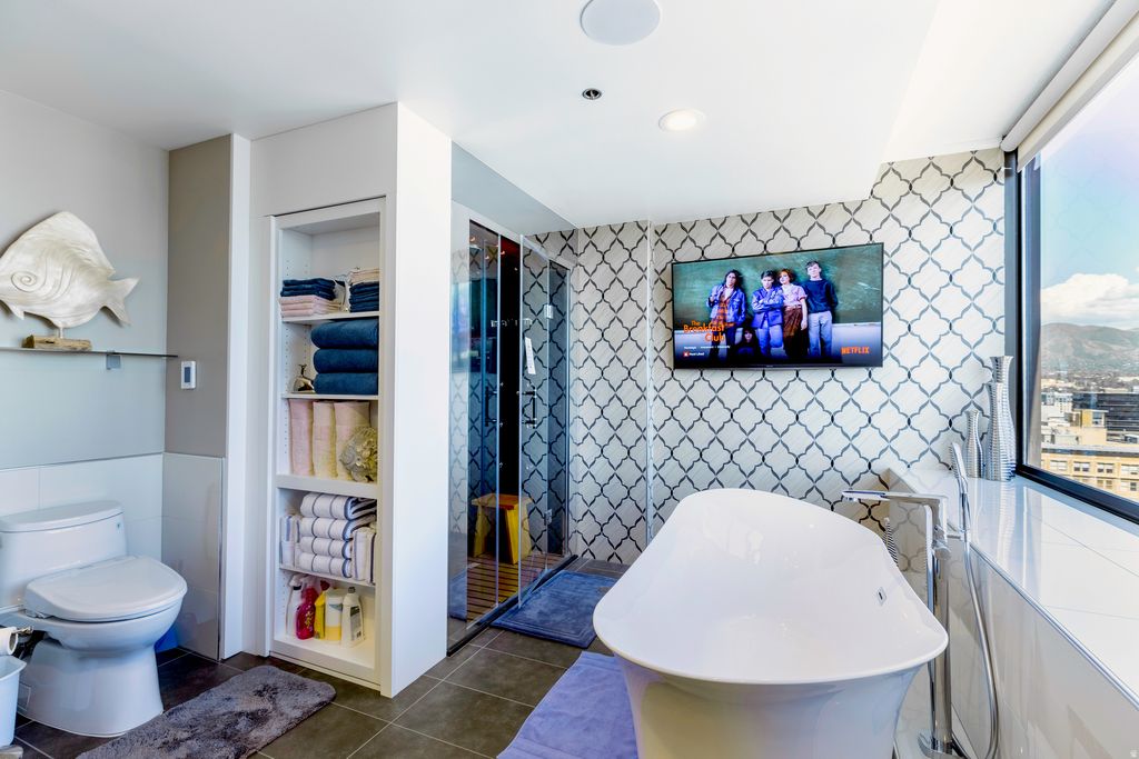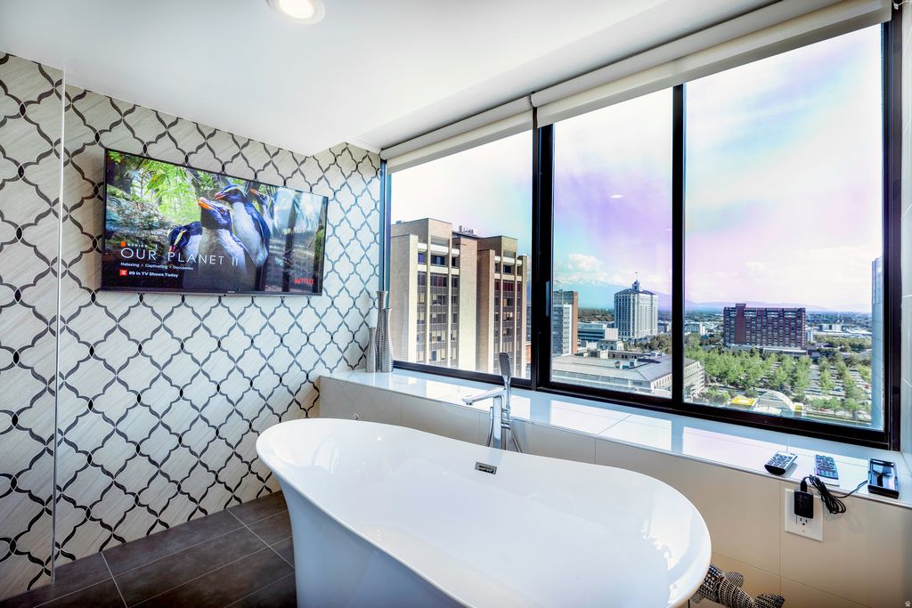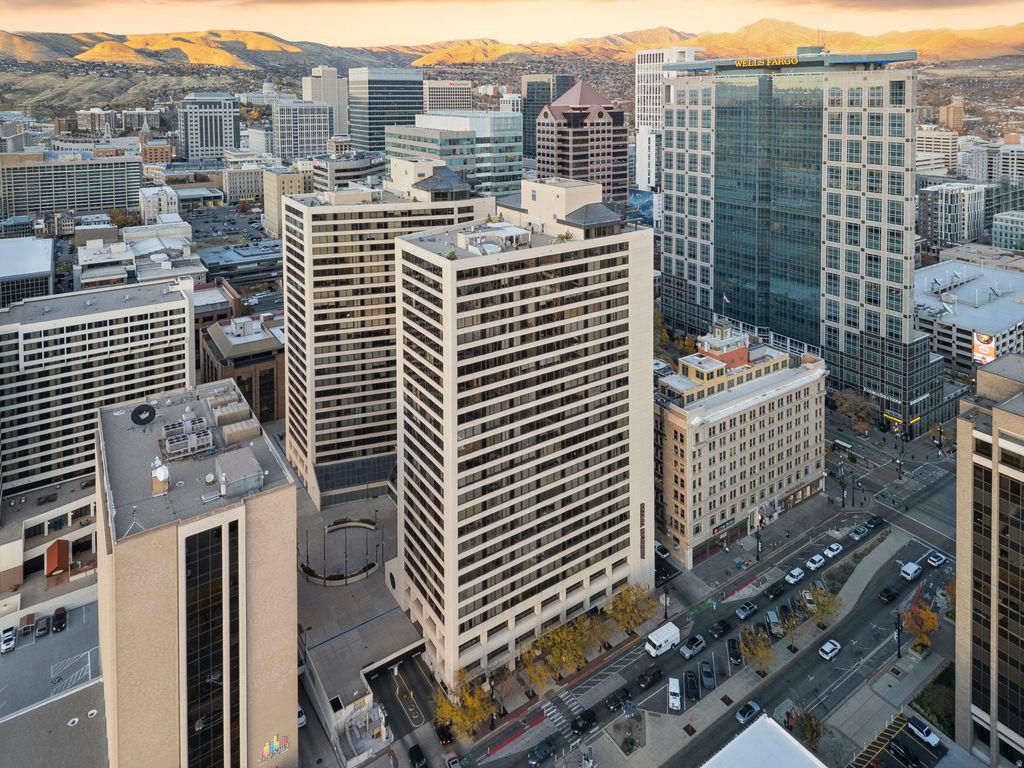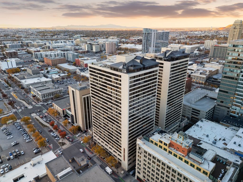 Welcome to one of the most exceptional residences ever offered in American Towers. Perched on the 14th floor of the South Tower, this fully reimagined condo is the only home of its kind-a modern, high-design retreat with 270-degree mountain and city views that stretch from sunrise to skyline sparkle. Completely taken down to the studs and completed in 2023, this home was rebuilt with premium materials and custom architectural details throughout, including Neolith stone cladding, engineered walnut flooring, mahogany doors with forged hardware, and upgraded lighting at every turn. The result is a residence that feels timeless, solid, and intentionally crafted. A full Control4 smart-home system runs the entire space-whole-home audio, independent video distribution, Italian-made motorized blinds, and integrated automation that makes day-to-day living effortless. Inside, the intelligent floor plan offers three bedrooms and three bathrooms, including a concealed office/guest suite and a luxurious primary retreat. Floor-to-ceiling windows fill the home with natural light and frame the evolving downtown landscape. A standout feature of the home is the professional-grade Dolby Atmos theater, complete with a 13.5' motorized screen, hidden Nexus projector lift, acoustic wall panels, luxury reclining seating, blackout blinds, and an LED starfield ceiling-an unparalleled cinematic experience rarely found in high-rise living. Additional highlights include two real-flame EcoSmart fireplaces, a fully upgraded kitchen with cherry cabinetry and quartzite counters, and a thoughtfully designed dining and living space built for both comfort and entertaining. American Towers offers unmatched convenience with 24/7 staffed security, secure underground parking (1 dedicated stall included; additional spaces available for rent), two rooftop terraces, an indoor pool, spa, sauna, fitness center, racquetball courts, and inviting community lounges. Located in the heart of downtown-just steps from the Eccles Theater, City Creek, award-winning dining, shopping, and TRAX-this residence delivers elevated living without compromise. A rare opportunity to own an award-winning, 2024 Parade-of-Homes-featured condo in one of Salt Lake City's most iconic towers. Homes like this simply don't come around twice. Nearly all furniture and dcor seen in the home are included in the sale; a detailed inventory list can be provided upon request. Be sure to explore the two virtual tours provided.