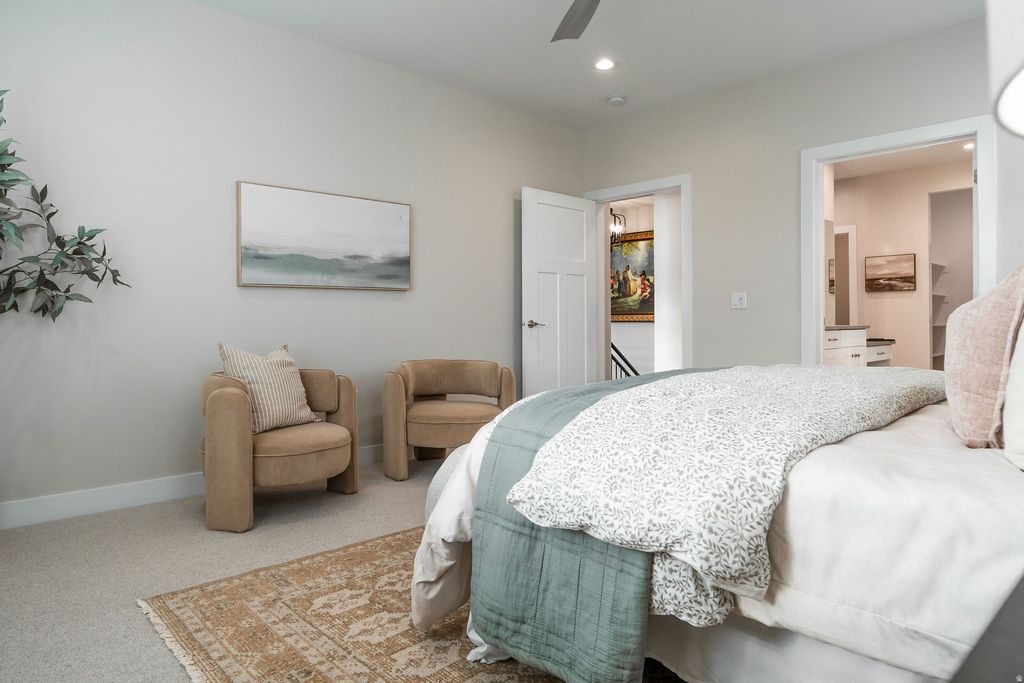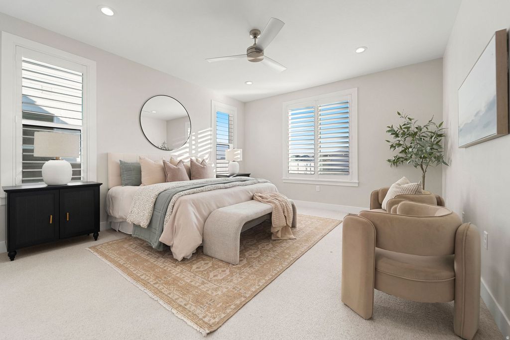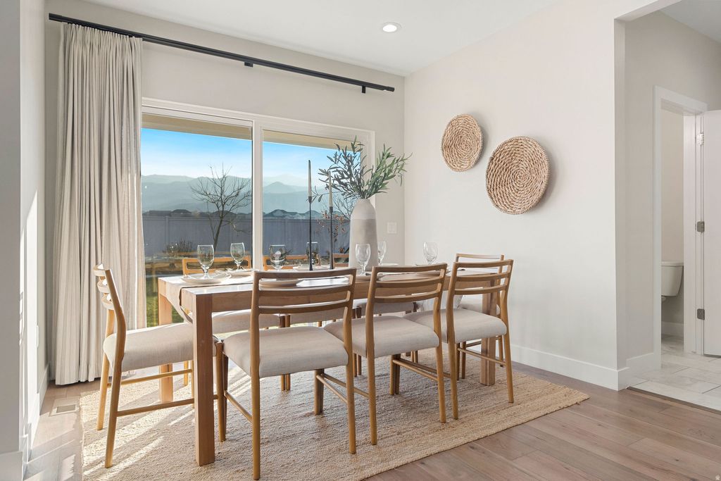 Stunning 4-bedroom, 3.5-bath rambler in the highly sought-after Beacon Pointe community of Saratoga Springs offers spacious single-level living with a fully finished basement and a beautifully designed 1,400 sq ft attached ADU featuring 2 bedrooms, 1 bath, its own kitchen, and a private entrance-perfect for multigenerational living or rental potential. The main floor boasts an open great room with vaulted ceilings, large windows, and a modern kitchen with a large pantry and gas range. Enjoy a luxurious primary suite with a walk-in closet and separate tub/shower. The exterior features include full landscaping, covered patio, outdoor lighting, and a fully fenced 0.23-acre lot with mountain views. The 3-car garage offers EV chargers, extra length. Solar panels are owned, providing excellent energy efficiency. HOA includes cable TV, maintenance, and more. Square footage figures are provided as courtesy estimates only and were obtained from county records. Buyer is advised to obtain an independent measurement. 3D TOUR: https://my.matterport.com/show/?m=Y2UFxpB7kcc