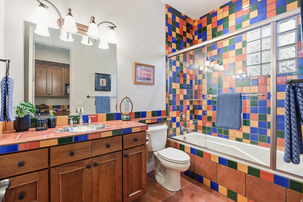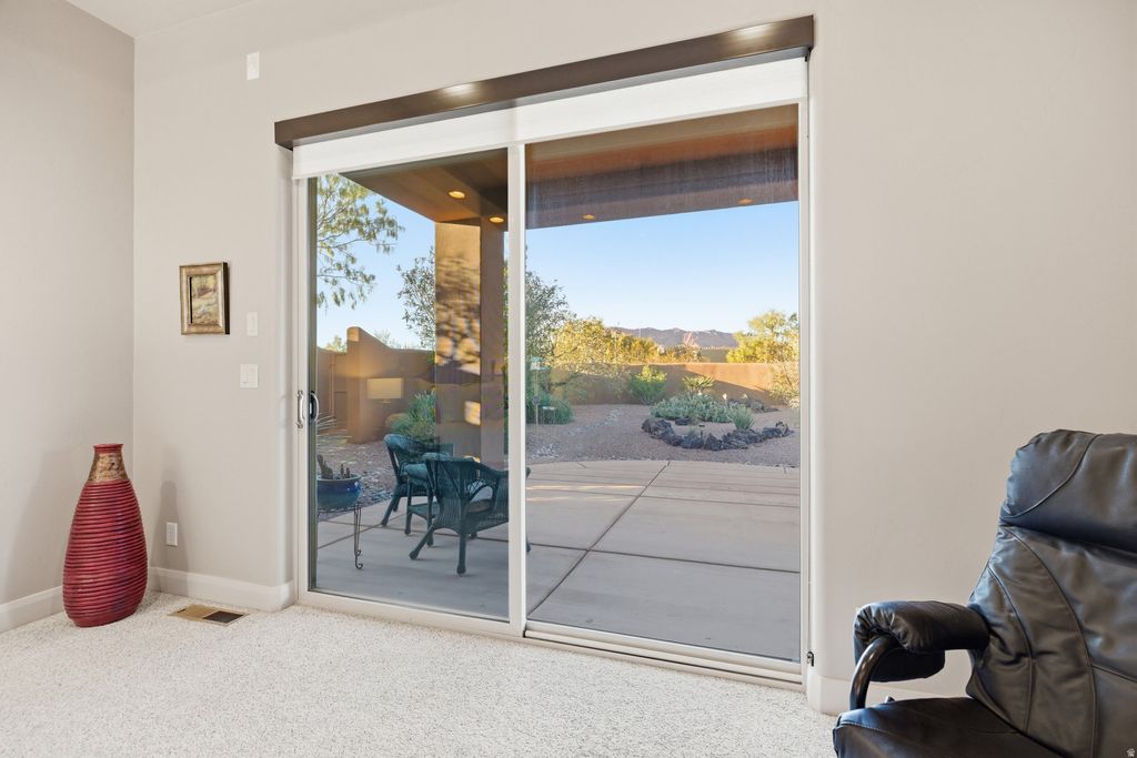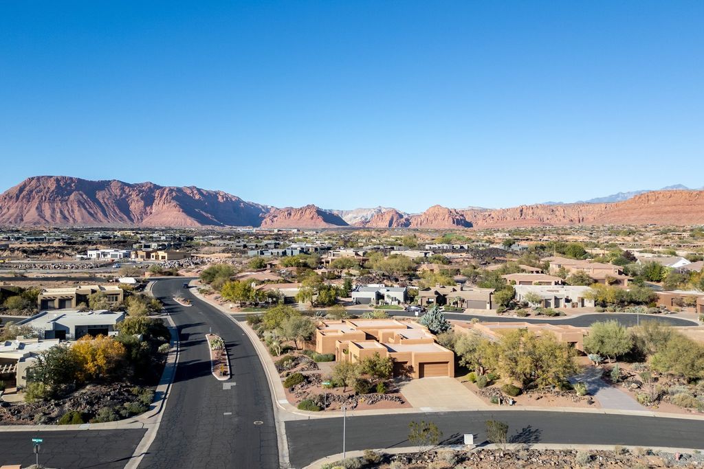Discoverluxury desert living in Lava Cove at Entrada, one of Southern Utah's premier country club communities. Set on a generous .53-acre corner lot, this beautifully maintained residence captures sweeping Red Rock and Pine Valley views from multiple rooms and outdoor spaces. A charming detached casita provides ideal guest accommodations with its own full bathroom and mini-kitchen. The property features a private gated courtyard with a fireplace, outdoor speakers, and landscape lighting-creating a magical ambiance in the evening. New pavers enhance the courtyard and entry, making for an elegant first impression. Inside, the home exudes warmth and comfort. The living room centers around a Kiva fireplace, accompanied by two dining areas perfect for entertaining. The kitchen offers beautiful wood cabinetry, double ovens, and a walk-in pantry. A dedicated office showcases built-in shelving, acustomdesk, andstorage. The spacious primary suiteshowcasesserene desert views, while the luxurious bath includes a jacuzzi tub, walk-in shower, large closet, and a beautifully crafted vanity. Each guest bedroom includes its own private bathroom, ensuring comfort and privacy for all. Enjoy impressive outdoor living on the large covered back patio, positioned perfectly for stunning Red Mountain views. The property extendsto Bedrock Circle, offering additional space and privacy. The home is wired for audio and includes speakers inside and out for effortless indooroutdoor living. Additional highlights include a side-entry garage with ceiling storage racks andworkbench, along with meticulously maintainedlandscaping This home is atrue desert retreat-comfortable, refined, and perfectly situated in one of Southern Utah's most coveted communities.The Entrada Golf Course features their recently redesigned course by the distinguished David McLay Kidd. As part of the Troon Prive Golf Course Network, Entrada has been rated the #2 best course in Utah with its par 72 course that extends across 7,280 yards of some of the most majestic desert landscape in the southwest. The community of Entrada includes a guard gate, clubhouse, two outdoor pools and spa, indoor pool, exquisite dining, fully equipped fitness center offering many fitness and yoga classes, tennis/pickleball courts, and a playground. The wellness center includes relaxing spa services such as facials, pedicures, massages, and body treatments. The community is centrally located in the beautiful city of Saint George, which is proud to now host the PGA Tour at Black Desert, multiple LPGA tournaments at Copper Rock, and many notable events, such as the World Championship of the Ironman, St. George Marathon, Red Bull Rampage, and tons of other amazing well-known events. It's only a short drive to America's most astonishing national parks, such as Zion, Bryce, and the North Rim of the Grand Canyon; and state parks and national forests like Snow Canyon, Sand Hollow Reservoir, Gunlock Reservoir, Quail Creek Reservoir, and Dixie Forest. The word is out that at 2,700 feet above sea level, on the edge of the Mojave desert, Colorado Plateau, and the Great Basin, lies one of America's most beautiful and distinctive geological places. This tranquil home is the perfect setting for you to establish your own gathering place in the heart of Southern Utah. All information herein is deemed reliable but is not guaranteed. The buyer is responsible to verify all listing information, including square footage/acreage, to the buyer's own satisfaction.