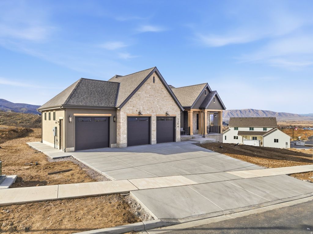 Discover refined luxury in this stunning new Salem home, crafted with high-end custom finishes and thoughtful design throughout. The gourmet kitchen features premium Caf appliances, quartz countertops, and exceptional cabinetry and millwork. An oversized 3-car garage includes a convenient "Costco door" with direct access to the pantry for effortless grocery unloading. The main floor showcases a spacious primary suite with a spa-like bathroom, custom closet layout, and designer finishes. A second bedroom on the main level functions as its own private suite-perfect for guests, multi-generational living, or a dedicated retreat. An impressive office with floor-to-ceiling views of the mountains creates an inspiring setting for work or creativity. The bright, open layout flows seamlessly to a large covered deck with panoramic views across Utah County. The walkout basement is ready for a future 2-bedroom apartment or additional living space to grow into, with a patio that fills the lower level with natural light. This is luxury living with unmatched functionality-every detail carefully considered.