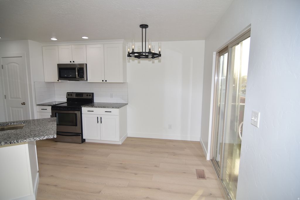 Beautifully updated 4 Bedroom 3.5 bath townhome with fully finished basement that can be used as the 4th bedroom, additional great room, media or exercise room. This home is located in a great location with major national outlets (Lowes, Walmart, Home Goods, etc.) and national chain restaurants within 5 minutes. New paint and flooring throughout the home and several new windows throughout the home. The kitchen features granite countertops, SS appliances including the fridge, range, built-in microwave and a new dishwasher. There's a huge deck off the back of the home with views of the valley, mountains and lake, plus views from the upper bedrooms of the mountains and valley. Convenient 2-car garage that keeps your vehicles safe and out of the weather and opens to the kitchen area so when you're bringing in the groceries it's easy. The owner's suite features a spacious bathroom, spacious owner's bathroom with a jetted tub/shower combo, double basin vanity and huge walk-in closet. Many new lightings and plumbing fixtures have been added to the home. This is a well built and updated home. Don't forget the playgrounds the HOA has. One is right out from your back deck that makes it easy to entertain the wee ones. As an owner of a home in Spanish Fork, you can join the new Spanish Fork Rec Center that opens December 15th with indoors and outdoor pools, weight room, pickleball and B-Ball courts, indoor track, several training classes and more. Square footage figures are provided as a courtesy estimate only and were obtained from Utah County Records. Buyer is advised to obtain an independent measurement.