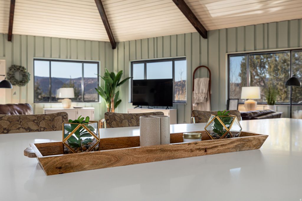 Welcome to The Bear Den! This recently remodeled, turn-key home offering 2.12 acres of horse property all within Kanab city limits. This property is perfect for those looking for a primary residence or an investment opportunity such as a short-term rental, currently in place. The home features soaring vaulted ceilings in the living room, complemented by panoramic windows that flood the space with natural light and red rock beauty. A whitewashed brick fireplace serves as a cozy focal point, seamlessly connecting the living area to the spacious kitchen. The oversized kitchen island with breakfast bar seating creates an ideal setting for entertaining. With 3 bedrooms, 2 bathrooms, a separate laundry room and wash sink, this home is thoughtfully designed for comfort and convenience. Step outside to the wraparound deck, where you can relax and take in the stunning views-perfect for outdoor living. Additional highlights include a sauna, storage shed for extra space, and xeriscaped landscaping for easy maintenance. Furnishings are negotiable, offering flexibility to make the space your own. Don't miss out on this unique property that offers both charm and potential! (Buyer to verify)