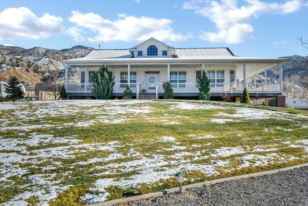 Captivating Views, Premium Comfort Systems & the Ultimate Shop Setup - This Home Has It ALL! Set on a perfect 1+ acre lot, this stunning property offers unmatched comfort, space, and lifestyle. Designed with dual furnaces and dual AC units for ideal temperature control on both the main level and basement, this home delivers year-round efficiency and peace of mind. Enjoy breathtaking valley views from the expansive wrap-around porch, where sunrise and sunset feel close enough to touch. Inside, you'll fall in love with the incredible, highly desirable kitchen, generous layout, and true main-floor living that blends convenience and elegance. The fully finished basement features its own exterior entrance, making it perfect for guests, multi-generational living, or future rental potential. Movie lovers will appreciate the dedicated theater room, complete with all included theater equipment for an immersive at-home cinema experience. Outside is where the dream continues: A beautifully finished attached 3-car garage PLUS a fantastic detached shop-a true dream space for projects, extra storage, or hobby use . 1+ acre paradise effortless This home offers too many features to list-comfort, function, views, land, and lifestyle. You must come see it in person to fully appreciate everything it offers.The home comes equipped with a Ring camera security system, including all 7 cameras. Buyer may continue service with Ring (subscription required) for full monitoring features. The home also features permanent Christmas lights on a photocell along the front porch and roofline. Manifold System (Home-Run System) All water lines run individually from a central manifold (usually located in the mechanical/HVAC room). Each line has its own shut-off valve, allowing you to isolate fixtures (sinks, toilets, showers) without shutting off the whole house.