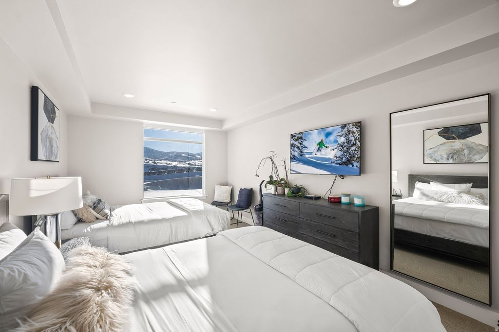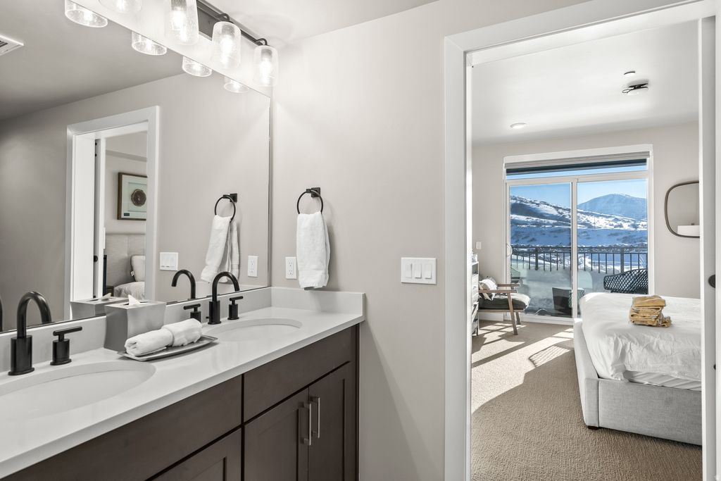 Positioned on the top floor, this residence delivers panoramic vistas of the surrounding mountains and the Jordanelle. Located within Black Rock Mountain Resort, the property is immersed in a full suite of upscale amenities, including an onsite restaurant and bar, a well-equipped fitness center with hot tubs, an arcade, a year-round pool, steam room and sauna, an owner lounge, and complimentary shuttle service to nearby ski resorts and local recreational activities. Interior features include Bertazzoni appliances, commercial-grade stainless steel finishes, Euro-style glass showers, under-mount sinks, and double-pane windows. The resort's future expansion plans-ice rink, ballroom, enlarged fitness center, and expanded convention facilities-enhance long-term value. Just 12 minutes to Park City's Main Street and 35 minutes from Salt Lake City International Airport, this turnkey residence is offered fully furnished. Nightly rentals are permitted, providing a compelling opportunity for supplemental income.