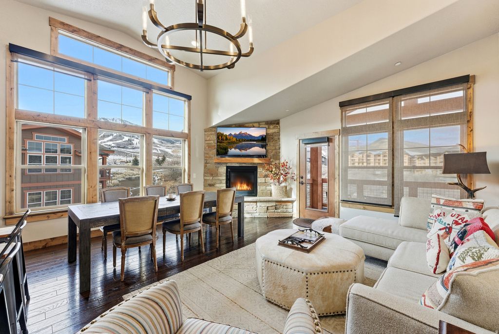 Location is just minutes from Deer Valley's massive East Village expansion, which brings seven new chairlifts, including the two-stage East Village Express gondola to Park City, and nearly 80 new runs. This adds 4,300 skiable acres right at your back door. This meticulously maintained 3-bedroom won't disappoint. It's located on the top floor (with elevator access to the 3rd floor). Walk into an open-concept floor plan featuring a vaulted great room with a beautiful fireplace, ski views, a contemporary kitchen with granite counters, Viking stainless steel appliances, a built-in wine and beverage cooler, and informal dining that completes this stunning space. Additional amenities include central vacuum, power shades, a Nest thermostat, central A/C, and a storage cage in the secure underground parking garage for skis, bikes, and other recreational gear. The spacious primary bedroom offers a walk-in closet and access to the large deck off the great room, where you can enjoy views of Deer Valley's ski runs and the lake. This fully furnished condo is perfectly located for access to Deer Valley East Village and everything it offers, as well as the recreation amenities of Jordanelle State Park, boating, jet skiing, paddleboarding, fishing, camping, and more. Nightly rentals are allowed, and the current rental history is strong. Why wait years for a new build when this condo is move-in ready today? A must-see property.