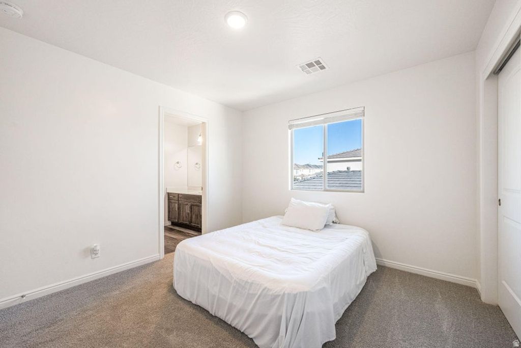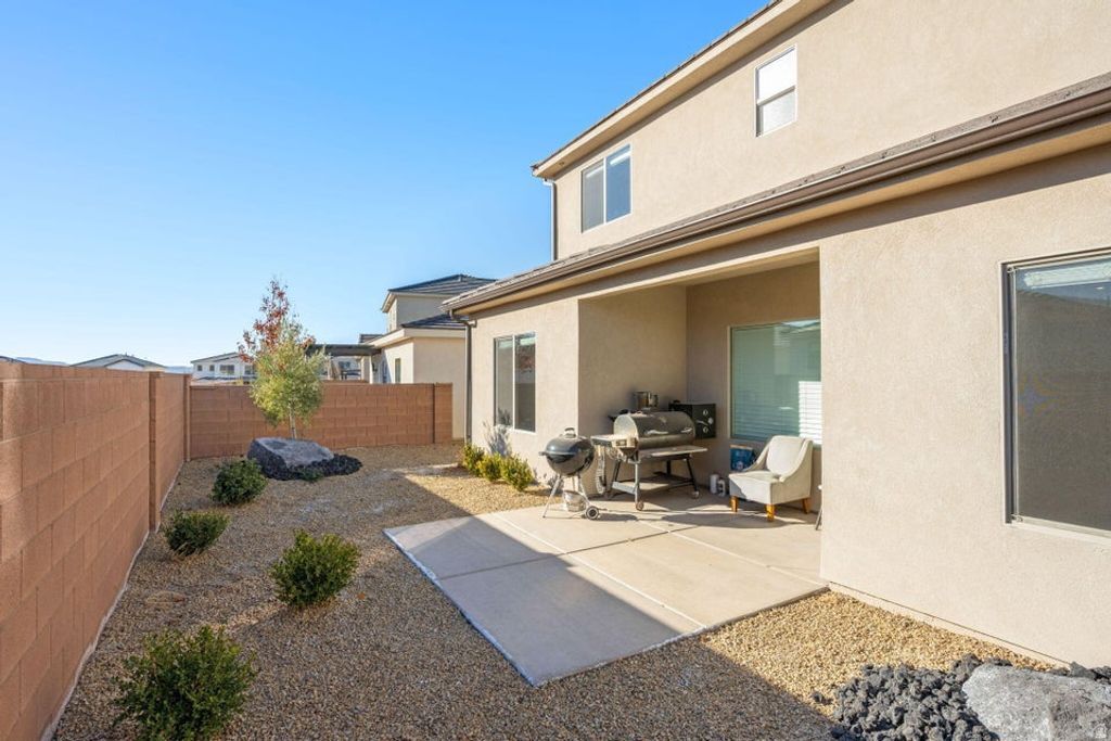 Welcome to this lovely, move-in-ready home located in White Trails, a fast-growing and exciting community. Homes offering this level of finish and location, especially below appraised value, are rare. Don't miss your chance to secure an exceptional property at an incredible price! *Appraisal report available upon request*. Inside, you'll find 2 open, inviting living spaces and a well-appointed kitchen. Half bathroom and primary en-suite on the main level with the remaining beds/baths on the top level. Step outside to your built-in BBQ and semi-covered patio. The yard is fully landscaped, offering a private retreat with low-maintenance appeal. Practical upgrades such as an EV charger and rain gutters add daily convenience and future value. The home sits within an amenity-rich community cornhole area. This home is near major upcoming additions, including a new career technical school, Costco, Sakura, Smith's, restaurants, retail, and everyday essentials.