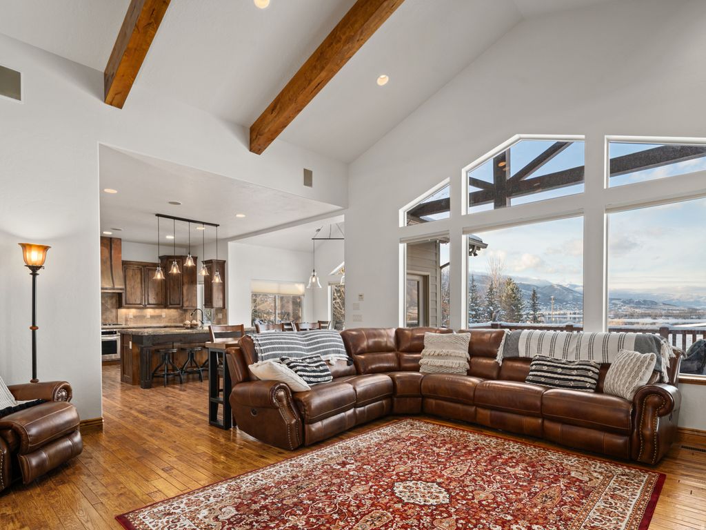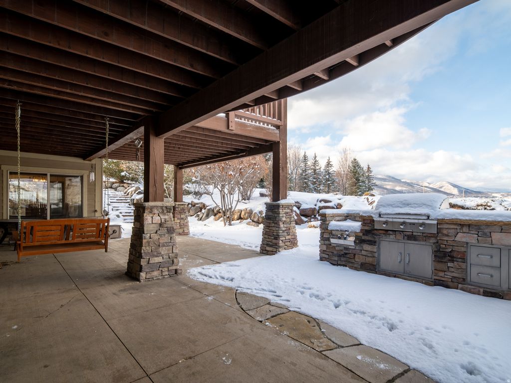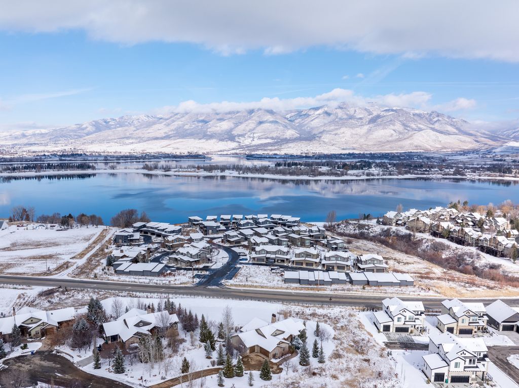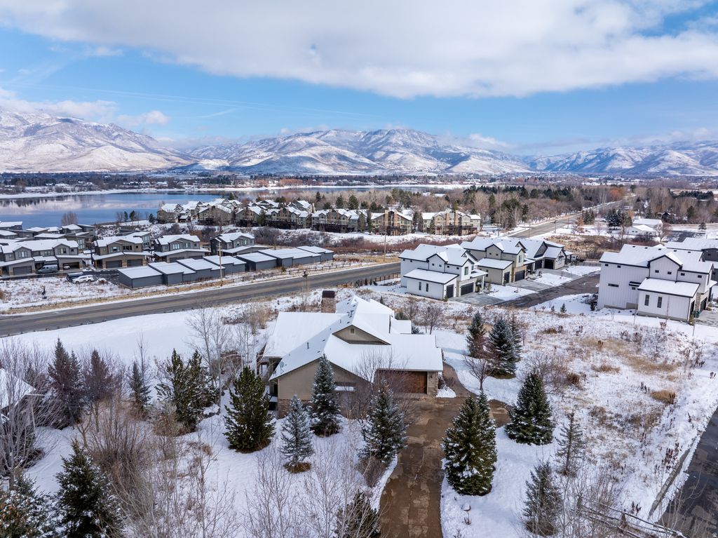 Located in the prestigious Chalets, this 4,774 sq. ft. luxury retreat offers sweeping lake and mountain views, seamlessly blending elegance, comfort, and modern convenience. Thoughtfully designed and sold fully furnished, this 4-bedroom, 4.5-bathroom residence is both an entertainer's dream and a serene mountain escape. Step into the welcoming foyer, where rich wood floors and rustic timber accents introduce the home's warm yet sophisticated style. Just off the entry, a flexible room serves perfectly as an office or additional bedroom, offering versatility to suit your needs. Continue into the expansive open-concept living area, where vaulted ceilings and oversized windows frame breathtaking panoramic vistas. A floor-to-ceiling stone fireplace with custom built-ins creates a striking focal point, adding both character and functionality. The chef's kitchen is equally impressive, featuring a gas range, double ovens, stainless steel appliances, and ample counter space-ideal for cooking, gathering, and entertaining. Through double doors awaits the luxurious primary suite, where stunning views set the tone for relaxation. The spa-inspired en-suite bathroom boasts a soaking tub, walk-in shower, and dual vanities, while the spacious walk-in closet offers generous storage. The lower level is designed for exceptional entertaining and relaxation, complete with brand-new radiant heat, a kitchenette, a state-of-the-art home theater, and a full sauna. This area flows effortlessly to the expansive outdoor living space, where a hot tub, custom outdoor kitchen with a brand-new American Grill, natural gas hookup, and impressive rockwork provide the perfect backdrop for gatherings. A gas fire pit and tranquil water feature elevate the ambiance, while a beautifully crafted stone staircase connects the back deck to the driveway with both elegance and ease. Additional highlights include a central vacuum system, whole-home soft water system, brand-new furnace and AC, and unparalleled panoramic views. Located just minutes from Snowbasin, Powder Mountain, and Pineview Reservoir, this remarkable retreat offers the perfect blend of adventure and tranquility. A rare opportunity to own a true mountain sanctuary-this is mountain living at its finest. All property information, boundaries, and documents to be verified by buyer.