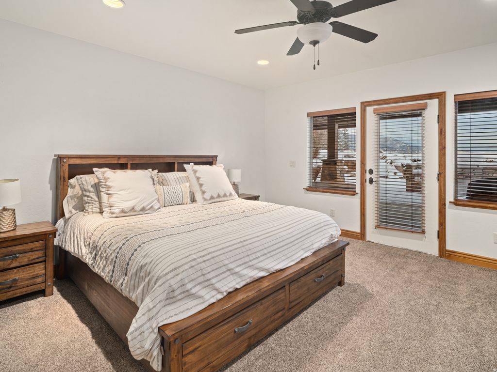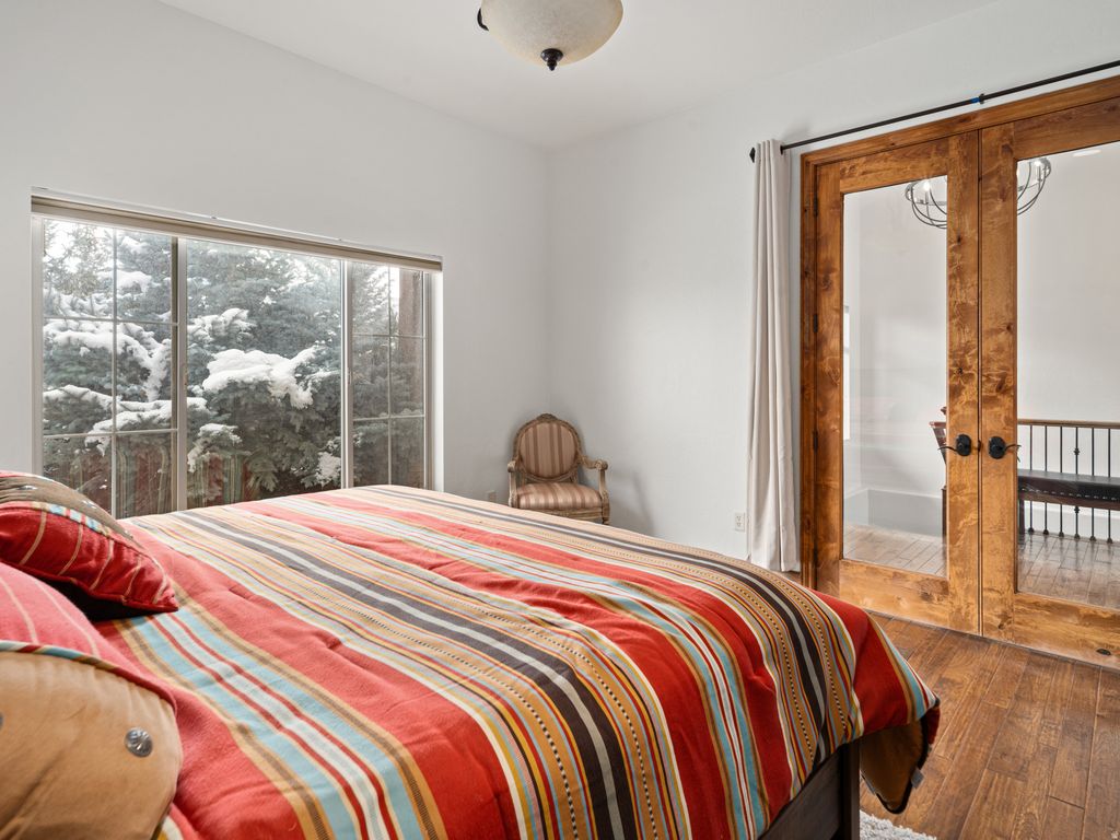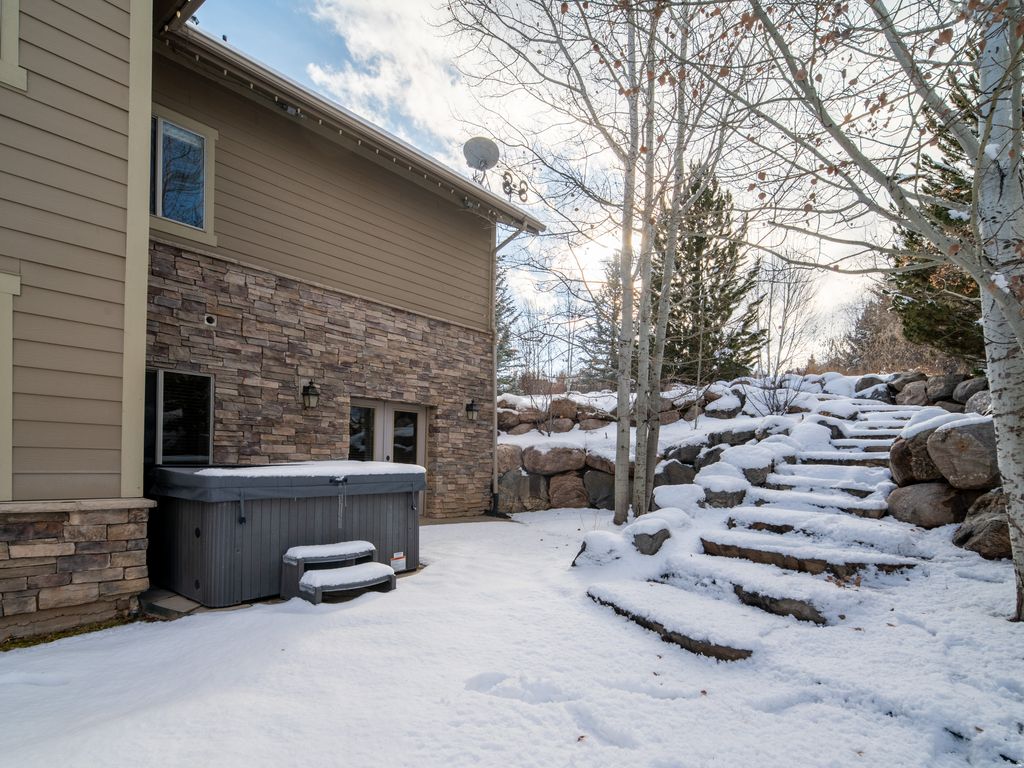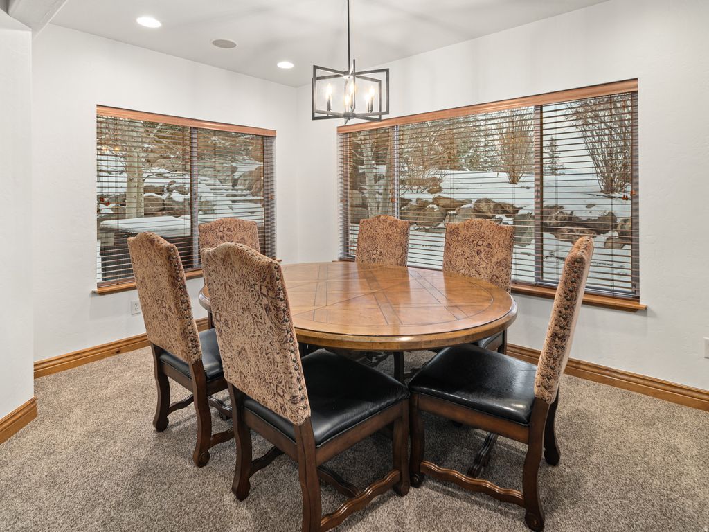Located in the prestigious Chalets, this 4,774 sq. ft. luxury retreat offers sweeping lake and mountain views, seamlessly blending elegance, comfort, and modern convenience. Thoughtfully designed and sold fully furnished, this 4-bedroom, 4.5-bathroom residence is both an entertainer's dream and a serene mountain escape. Step into the welcoming foyer, where rich wood floors and rustic timber accents introduce the home's warm yet sophisticated style. Just off the entry, a flexible room serves perfectly as an office or additional bedroom, offering versatility to suit your needs. Continue into the expansive open-concept living area, where vaulted ceilings and oversized windows frame breathtaking panoramic vistas. A floor-to-ceiling stone fireplace with custom built-ins creates a striking focal point, adding both character and functionality. The chef's kitchen is equally impressive, featuring a gas range, double ovens, stainless steel appliances, and ample counter space-ideal for cooking, gathering, and entertaining. Through double doors awaits the luxurious primary suite, where stunning views set the tone for relaxation. The spa-inspired en-suite bathroom boasts a soaking tub, walk-in shower, and dual vanities, while the spacious walk-in closet offers generous storage. The lower level is designed for exceptional entertaining and relaxation, complete with brand-new radiant heat, a kitchenette, a state-of-the-art home theater, and a full sauna. This area flows effortlessly to the expansive outdoor living space, where a hot tub, custom outdoor kitchen with a brand-new American Grill, natural gas hookup, and impressive rockwork provide the perfect backdrop for gatherings. A gas fire pit and tranquil water feature elevate the ambiance, while a beautifully crafted stone staircase connects the back deck to the driveway with both elegance and ease. Additional highlights include a central vacuum system, whole-home soft water system, brand-new furnace and AC, and unparalleled panoramic views. Located just minutes from Snowbasin, Powder Mountain, and Pineview Reservoir, this remarkable retreat offers the perfect blend of adventure and tranquility. A rare opportunity to own a true mountain sanctuary-this is mountain living at its finest. All property information, boundaries, and documents to be verified by buyer.