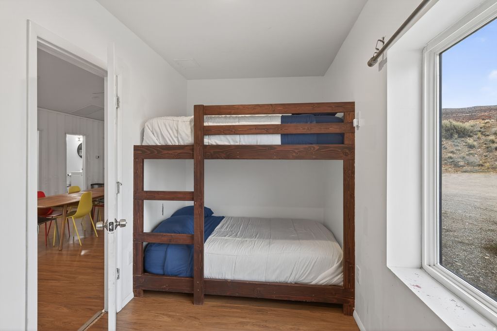 Imagine the possibilities with this one-of-a-kind container home set on 1.04 acres and surrounded by stunning red rock views. The 3-bedroom, 3-bath layout features an open living and kitchen area with built-in beds that offer a smart starting point for customization. A spacious detached garage/shop with office, kitchenette, and expansive upper-level space provides endless potential-whether for creative projects, additional living space, or the ultimate adventure basecamp. A rare opportunity to shape a truly personalized dream home in the heart of Moab's iconic landscape. Square footage figures are provided as a courtesy estimate only and were obtained from images. Buyer is advised to obtain an independent measurement.