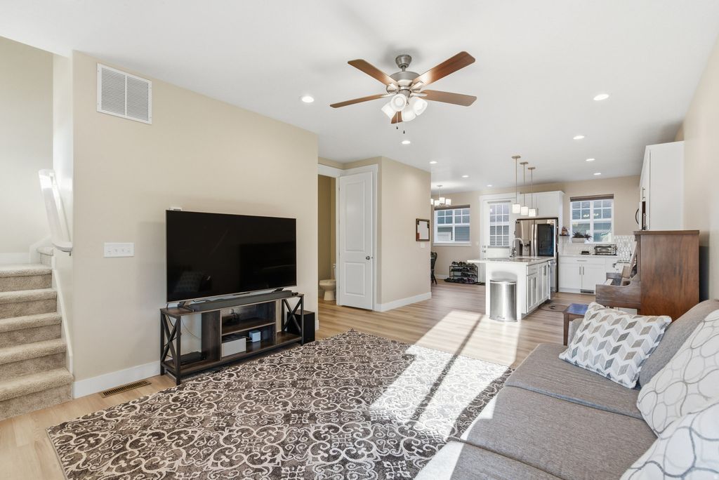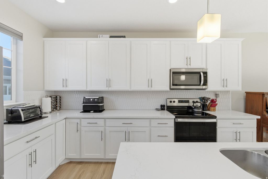 Come check out this beautiful townhouse! The home is ideally located with quick freeway access just minutes away, while still being surrounded by open, spacious land that gives the area a peaceful feel. A nearby walking path leads directly to a large park, and there is also a fun playground located within the community. When the owner built the home, they chose the $10,000 upgraded package, which includes white cabinetry, upgraded light fixtures, and upgraded countertops in both the kitchen and bathrooms. These upgrades create a bright, open, and inviting atmosphere throughout the home. The property also features custom shades with great functionality and added style. Although the home is listed as built in 2021, it was not completed and sold until January 2023, making it barely lived in. The carpet is in pristine condition and has never had shoes worn on it. Another standout feature is the attic, which offers an impressive amount of storage and includes additional built-in shelving-an upgrade not found in surrounding homes.