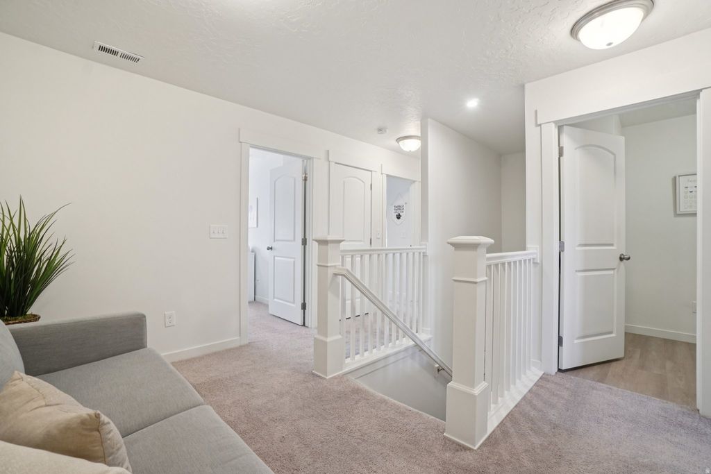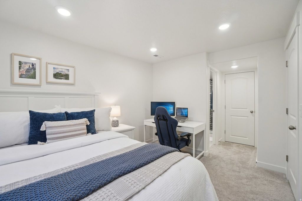 **OPEN HOUSE 11/20 11am-1pm** Completely customized 4-bedroom, 4-bath townhouse with a finished basement and high-end finishes throughout. The main level welcomes you with custom entryway trim, 9' ceilings, and an open-concept living space. The kitchen features quartz countertops, an island with bar seating, a backsplash, and stainless steel appliances. A mudroom just off the garage includes a built-in bench with storage. Upstairs you'll find a third gathering space in the loft, three bedrooms, two bathrooms, and laundry conveniently located next to the bedrooms. The spacious primary suite features double sinks, a walk-in closet, and an ensuite bathroom.The basement was finished at the end of 2024 and includes a custom accent wall, premium carpet and pad, and a bathroom with a luxury Euro glass shower, two-tone designer tile, and penny round tile flooring. The basement bedroom functions as a private guest suite with its own bathroom, along with cold storage, a water softener, a reverse osmosis system, and extra blown-in insulation to help dampen noise. Additional highlights include can lighting on the main floor and throughout the basement, a radon mitigation system, a two-car garage, and a fully finished backyard with patio. The HOA fee covers all exterior maintenance and landscaping and also provides access to the pool, pickleball courts, parks, a clubhouse, and walking and biking trails. Located close to mountain biking and hiking trails, Utah Lake, golf courses, Thanksgiving Point, restaurants, and just minutes from Costco, Walmart, and Smith's. This home is clean and ready for its new owner.
