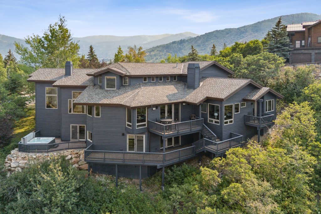Mountain View Home Minutes from the Ski Resort. Updated and ideally located, this 6-bedroom, 7-bath mountain home offers sweeping views of Lewis Peak, the Snyderville Basin, Swaner Preserve, ski runs, and a scenic pond. Set on a private 0.42-acre lot backing to open space and wildlife corridors, the home enjoys exceptional privacy, frequent wildlife sightings, and long-term view protection. The layout is highly functional and ideal for large families or multi-generational living, offering plenty of space to spread out. The main level features two spacious bedrooms with ensuite baths, ideal for primary living and guests. The upper level includes three additional bedrooms along with a loft and dedicated workspace, creating flexible areas for kids, homework, or home office use. The lower level offers an additional bedroom, a private home theater, gym room, game room, and a secondary living area, along with an extra guest suite featuring its own ensuite bath. Multiple living zones throughout the home allow for both gathering and privacy. Recent updates include a new roof (2019), three new A/C units, new garage doors, updated heating and water systems, and select interior improvements. Outdoor living is a highlight, with generous deck space and a beautifully positioned hot tub perfect for entertaining and enjoying the surrounding views. A spacious 3-car garage and short, level driveway provides easy year-round access. Located within the Park City School District and just minutes from Canyons Village at Park City Mountain Resort, the home offers quick access to skiing, hiking, and biking. Main Street Park City is approximately five minutes away, with Kimball Junction just a couple minutes in the opposite direction, making this a centrally located home ideal for full-time living or a mountain getaway. A short walk leads to the neighborhood clubhouse featuring a pool, fitness center, tennis, and pickleball.