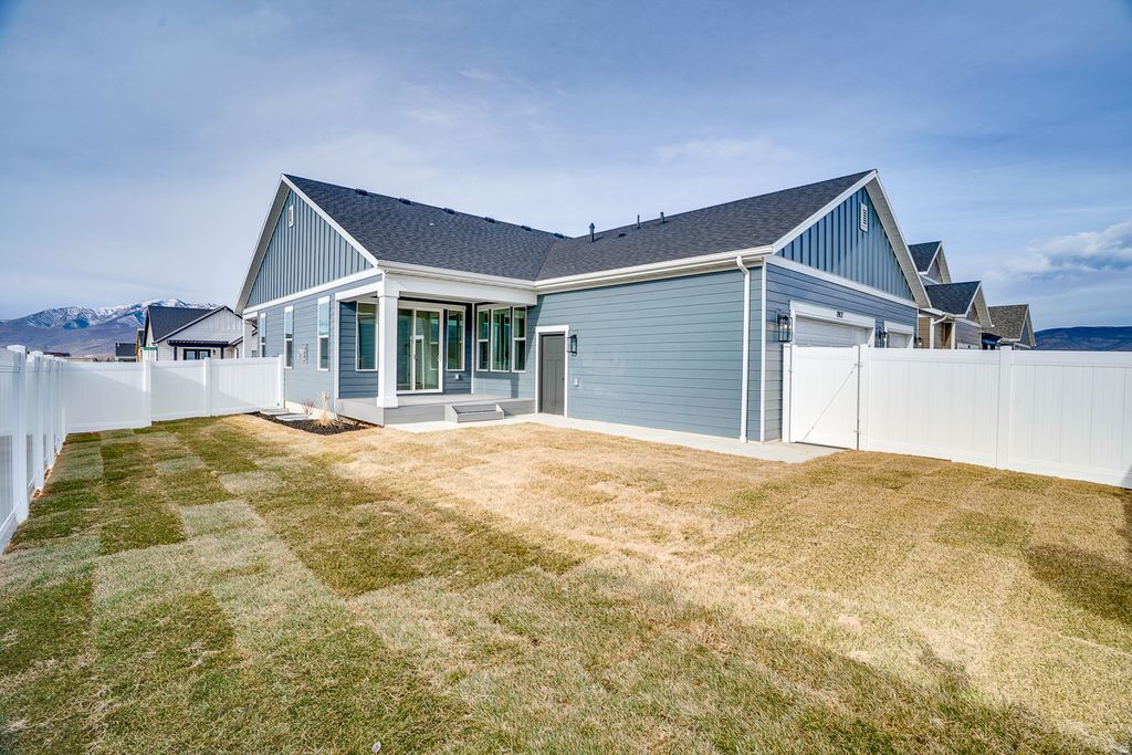 Sales Event! Receive $31,800 towards interest rate buy down and or closing costs with preferred lender. Main floor living at its best. 9' ceilings on the main. Large extended 3rd car garage with extra height and depth. Enjoy the mountain views with 3 outdoor patio areas. The primary suite is a retreat with spa like bathroom and access from the primary closet into the laundry room. Office on the main with glass french doors, quartz countertops throughout, HUGE walk in pantry, double ovens, gas cooktop, Fully finished basement offering a spacious family room, large windows with abundant natural light, and storage galore! This home includes full landscaping and backyard fencing. Buyer to verify all.