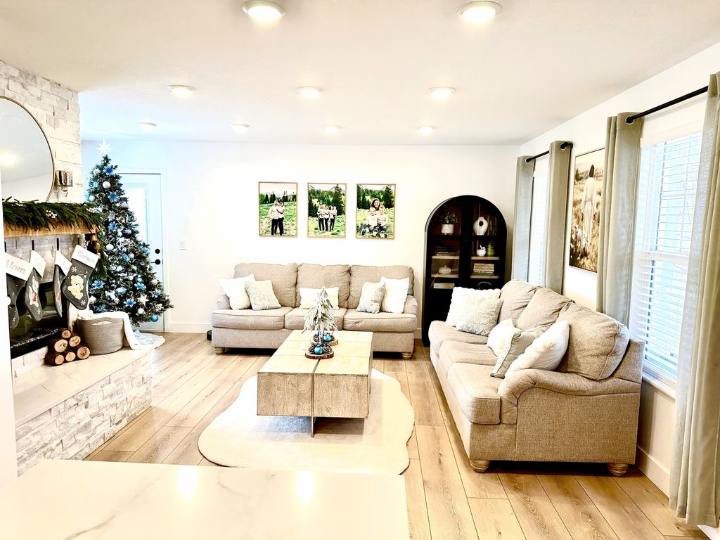 Fully renovated top-to-bottom, this beautifully updated 4-bedroom, 3-bath home offers 1,970 sq ft of comfortable living in Eagle Mountain. Built in 2000, the home features extensive upgrades throughout, including fresh paint, updated flooring, a remodeled kitchen and bathrooms, brand-new countertops, brand-new appliances, and all new doors and trim. Major system improvements include all new plumbing fixtures, all new electrical switches, safety outlets, a brand-new electrical panel, and updated lighting throughout. Additional features include cold storage and a charming porch, perfect for relaxing or entertaining. The thoughtfully designed layout includes two laundry rooms for added convenience, along with a functional 2-car garage. Enjoy added privacy with no backyard neighbors. Located in a quiet neighborhood with close access to schools, parks, and everyday amenities, this move-in-ready home is one you won't want to miss.