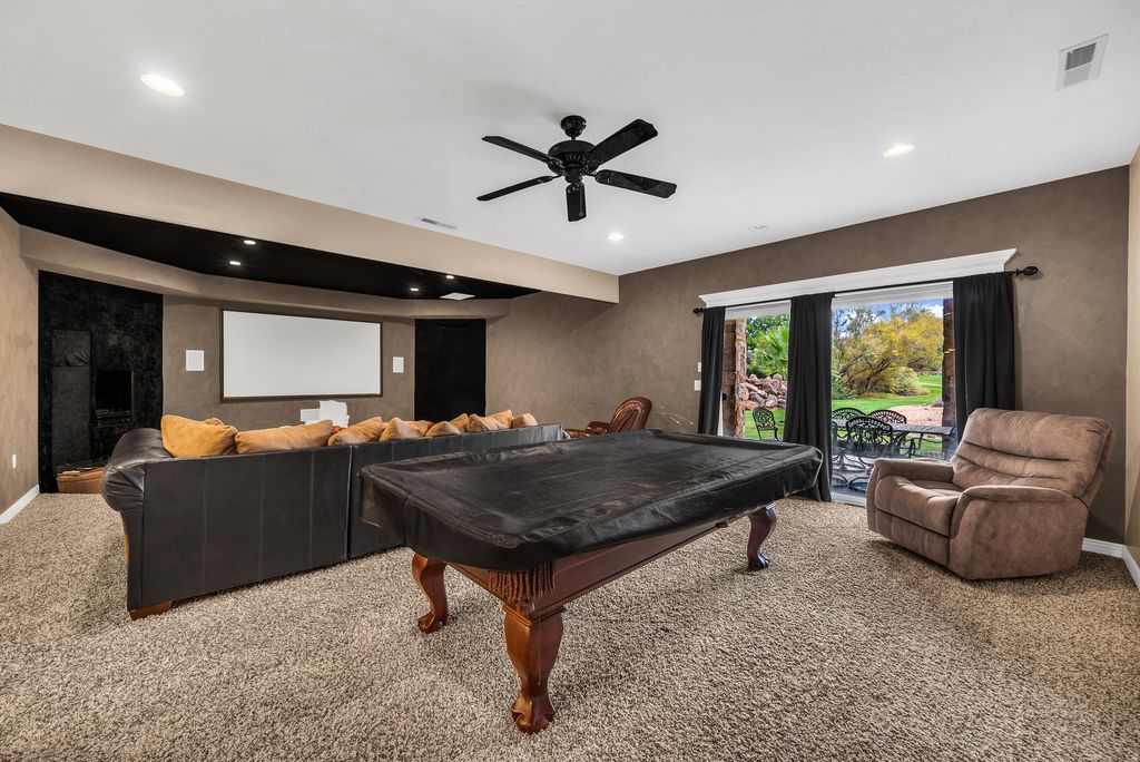 This Hurricane home is a dream property! Its location is near all the popular attractions of Saint George... (boating, mountain biking, hiking, etc.) it backs up to the 11th hole of one of the prettiest golf courses in Southern Utah! You can relax on the large upper deck, and enjoy views of Pine Valley Mountain, and Zions. The custom architecture, three fireplaces, and Travertine floors add a touch of luxury to the home. The theater room is perfect for entertainment, and the interior lighting creates a cozy ambiance. The presence of two primary suites and a second kitchen with a separate entrance adds convenience and flexibility. The outdoor amenities, such as the built-in BBQ, fridge, fire pit, misters, and rope lighting, provide a great space for entertaining friends and family. It's worth mentioning that there is a possibility for a furniture package. Buyer to verify all information, including utilities and HOA details.