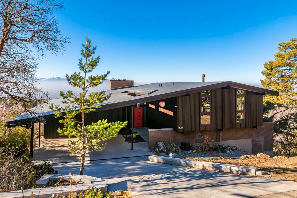 Designed by Glen Ashton Lloyd and built by Research Homes, this Ron Molen residence rests quietly at the end of the road: where the world slows and the architecture speaks. Its classic timber post-and-beam construction, increasingly rare and deeply coveted, anchors the home in both craft and time. The main volume settles confidently behind a privacy wall in front, cool and composed, while the south wing lifts and reaches, cantilevering lightly over the hillside with a butterfly's grace. A stand of scrub oak gathers around the house from the sides and rear, creating a sense of seclusion and belonging. A central walkway leads to the cheerfullyorangefront door, flanked on one side by a carport that is both fetching and befitting. The home's thoughtful siting captures open valley views to the back and preserves privacy from the front. Just steps away, Neff's Canyon Trail offers a direct connection to the woods above and beyond. Inside, the home unfolds through subtle shifts in elevation, with the post-and-beam structure stitching the spaces together. Floating stairs, rough-sawn timber walls, sunken conversation areas, and Molen's signature bedroom built-ins reveal a deep understanding of how people live, gather, and retreat. This is a home shaped around movement, between indoors and out, between shared moments and quiet pauses. Intentional, expressive, and deeply human -- this isquintessentialMolen.