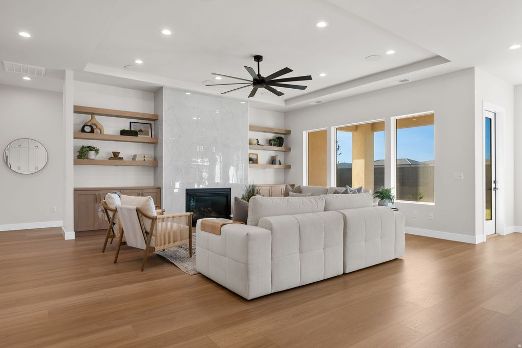 Welcome to 2022 S Blossom Way, where modern comfort meets Southern Utah charm and sunshine. This Stunning new build from Novelty Homes is located in the desirable Oak Haven Community. It features an open, functional 5 bedroom 3 and a quarter bath floor plan, filled with natural light and spacious cabinet/storage space for everyday living. The home has a large kitchen area with top of the line features, including a 60 inch fridge/freezer, and an upgraded cooktop/oven. The entire home has pristine upscale high-end finishes. The home was designed with a $20,000 thoughtful designed-distributed audio/sound system throughout the home. Sound system is a 4 zone audio system with a 5 speaker surround sound set up in both the great room and upstairs family room for enjoyable entertainment. Home comes with a full cat6 network system making all network jacks in the house live, with 2 access point network boosters for WiFi. The home is equipped with a 9 camera surveillance system with the doorbell included in that. Property highlights a full 4 car garage with extra height and depth. Home is beautifully landscaped and move in ready! Close to some of the most amazing Southern Utah golf courses and outdoor recreation areas.