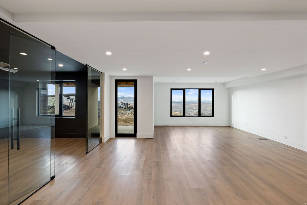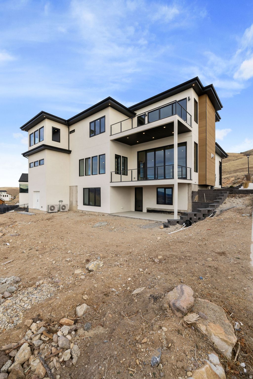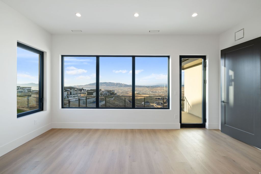 A stunning full custom home built in collaboration with interior and exterior designers, featuring a warm, organic modern aesthetic and high-end finishes throughout. The home offers unobstructed, panoramic valley views from every level and every room. The home features 4 bedrooms, 2 offices, a glass gym, and large theatre room, with flexibility for the offices and gym to be used as additional bedrooms if desired. Located in a highly sought-after neighborhood surrounded by multi-million-dollar homes and Parade of Homes homes, and minutes from I-15, top schools, and shopping. This is a rare opportunity for a brand new, thoughtfully designed custom home with exceptional views in this neighborhood. Schedule a showing to see what this home has to offer. Square footage figures are provided as a courtesy estimate only and were obtained from Building plans. Buyer is advised to obtain an independent measurement. Schedule a showing to see what this home has to offer.