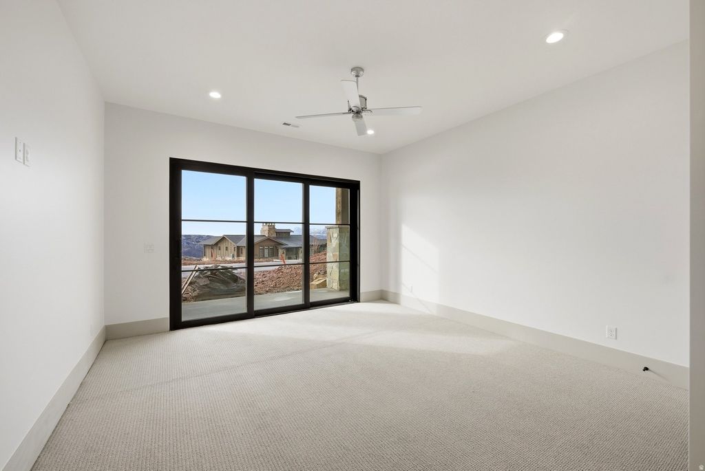 This brand new luxury build is perfectly seated on the lower hills of Golden Eagle to capture epic and inspiring views of Deer Valley ski runs and the peaks of Timpanogos, as well as the Jordanelle reservoir. This classic mountain luxury style home is built with elevated style and effortless function at its core. An oversized three car garage and grand driveway sets the stage for an elegant exterior with massive patios and decks to take in panoramic mountain vistas. The lower level has three large bedrooms with walk-out patios and a versatile living space that can accommodate a tv lounge with an adjoining alcove for a billiards room or library. A bespoke laundry room with colorful accents and beautiful stone rounds out this level, perfect for entertaining guests with comfort and privacy. The foyer features an elegant stone wall that follows the staircase to the main level. Every detail is thoughtfully crafted from beautiful stone basins in the powder bath, to hand picked quartzite slabs and light fixtures. The main level opens up to massive mountain views flooding the house with light and natural beauty. Large glass doors slide all the way across to provide indoor-outdoor living from the main room. The gourmet kitchen has custom walnut cabinetry with Thermador appliances, and double ovens. The grand focal point of this sunny living space is a floor to ceiling fireplace that tastefully grounds the room in a cozy and elegant atmosphere. Off the main room is a beautiful office space with French doors, and further down you enter the primary bedroom with stunning deer valley views and private balcony access. A stone fireplace, gorgeous oversized bathroom with a soaking tub, beautifully tiled shower and walk-in closet complete this luxurious primary suite. Rounding out the home exterior is a large back patio space for quiet nights under the stars, perfect for outdoor dining or soaking in the hot tub. As one of Golden Eagle's most desirable gems, this home is fully complete and ready to welcome you home to the most stunning views in Utah.