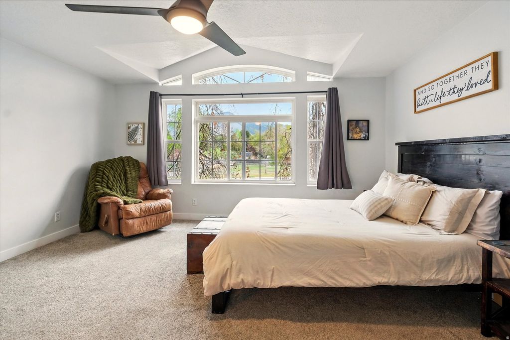 This beautiful home sits on a large, flat lot with mature trees and massive garden. Fruit trees include apple, pear, and cherry as well as full raspberry patch. Enjoy beautiful mountain views from the kitchen window! Main level master featuring large shower, washer and dryer. Square footage estimates obtained from most recent appraisal. buyer advised to obtain independent measurement.