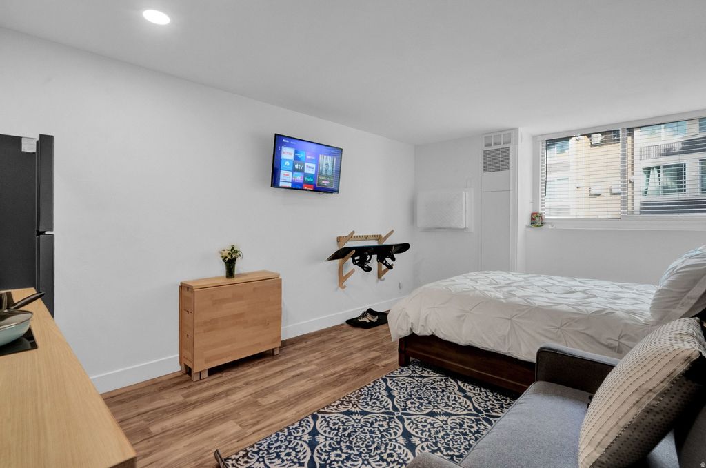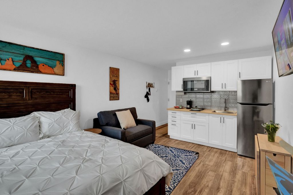 Located in the heart of Park City's popular Prospector Square, this inviting studio offers a great opportunity for both personal use and investment. Thoughtfully updated and efficiently laid out, the space feels open, bright, and welcoming from the moment you step inside. The unit sleeps up to three with a queen bed and a convenient fold-out twin. The kitchen is equipped with modern appliances, contemporary cabinetry, and generous workspace. The bathroom features updated finishes and a clean, modern design. An added bonus is the A/C mini-split that provides your cool down after a long day of downhill mountain biking at nearby Park City Mountain Resort or Deer Valley. Residents and guests enjoy access to community amenities, including a seasonal pool, outdoor fire pit, and shared laundry facilities. The location is hard to beat, with an easy walk to Main Street via the Rail Trail and City Park, plus quick access to nearby hiking and biking trails. Prospector Square also offers a wide variety of dining options just steps away, making it easy to enjoy everything Park City has to offer. Short-term rentals are permitted, offering strong income potential in one of Park City's most consistent rental markets. Whether you're looking for a low-maintenance mountain retreat or a proven investment property, this Prospector Square studio delivers convenience, comfort, and opportunity in a prime location.