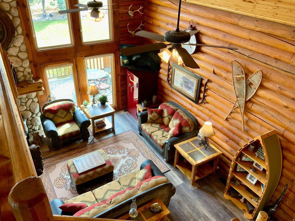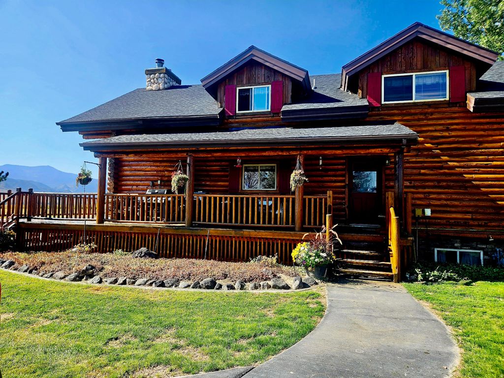 Here is your chance to own a custom built log cabin home on 4.22 acres. The views are amazing from every window, in every direction. The private gravel drive takes you to this beautiful home that faces to the east and has an amazing view of the Cove and Monroe mountain range. The lay out of this home has very private bedrooms with lots of shared space for entertainment. Front porch offers a wood burning stove and a gas insert fire place on the back patio. Large 3 car garage with living space above, approximately 585 sq. ft. There is planted pasture on this property that comes with 3 shares of Elsinore canal water. All estimates were provided as a courtesy. Buyers and agent's are to verify all listing information.
