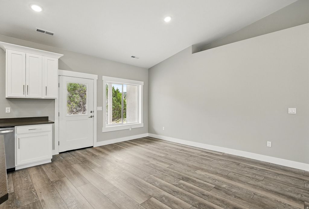 Gorgeous new construction in Ashdown Forest, now completed. Spacious open floor plan with over 2000 sq ft, 4 bedrooms and a 3-car garage. Main living areas flow to the large covered patio outside-perfect for entertaining. Features incl: vaulted living areas, white kitchen, HUGE walk-in pantry, large island, stainless range hood & complete kitchen appliances. Outside there is a long welcoming front porch & a covered back patio; native trees have been preserved on the .32 acre lot. Quality construction details include 2x6 exterior walls, solid wood cabinetry, finished & insulated garage. New homes are rare in this scenic established neighborhood, which is close to canyon trails. The perfect home for families wanting to be near schools, or retirees needing extra space.