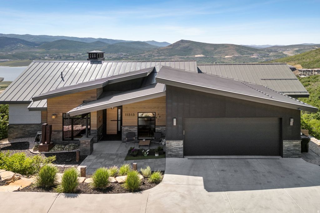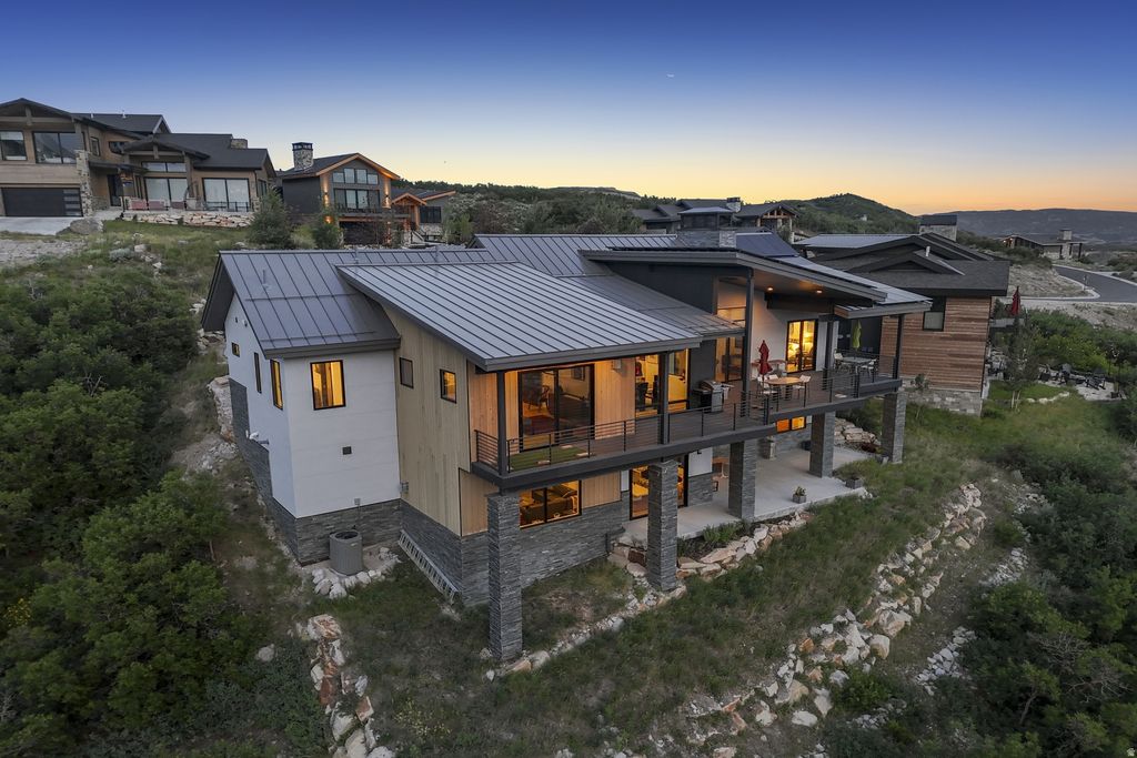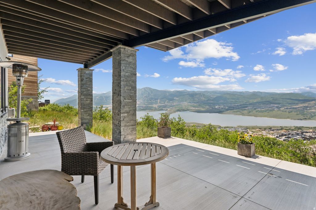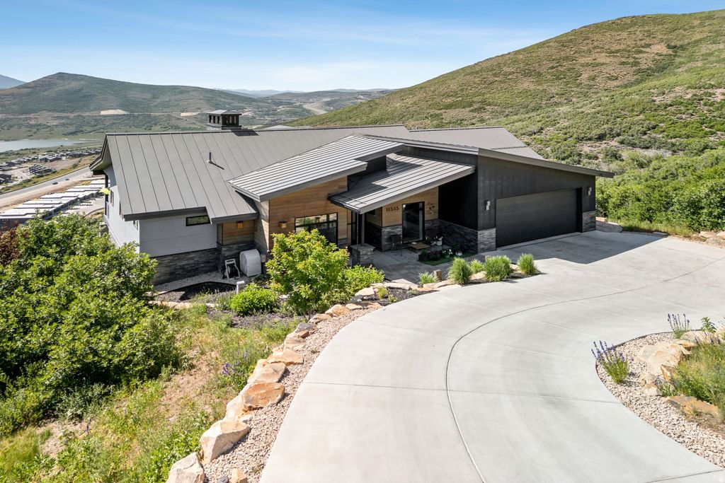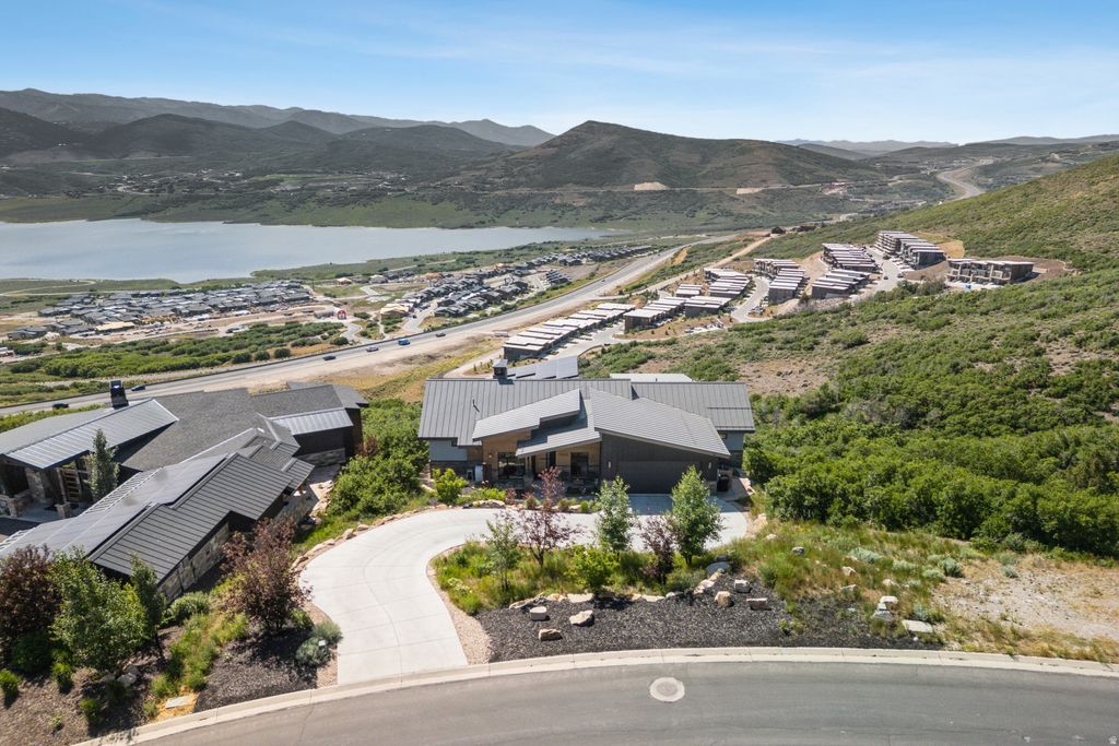 Perched above the Jordanelle Reservoir in the Soaring Hawk community, this architectural masterpiece by Jorgenson Builders captures sweeping, unobstructed views of Mt. Timpanogos and the iconic ski slopes of Deer Valley and Park City. Every detail of this sanctuary reflects refined mountain luxury, designed for effortless single-level living with soaring ceilings, walls of glass, and seamless indoor-outdoor flow. The great room unfolds to dramatic vistas, while the gourmet kitchen impresses with premium Dacor appliances, a Wolf cooktop, and an elegant butler's pantry featuring a warming drawer, upright freezer, drawer microwave, and dishwasher-tailored for sophisticated entertaining. The primary suite is an intimate retreat, complete with a gas fireplace, private deck access, and a spa-worthy bath offering a soaking tub, glass-enclosed shower, dual vanities, and a spacious walk-in closet. The lower level offers a generous second living space with its own gas fireplace, perfect for gatherings or quiet evenings. Plans are available upon request to easily add an additional bedroom and bathroom in the lower level, offering flexible expansion potential for future needs. Clad in zinc, stone, stucco, and cedar, with a standing-seam metal roof, Pella Low-E windows, and Trex decking, the home is engineered for timeless beauty with minimal upkeep. Smart-home innovations include motorized blinds, Tekmar driveway and entrance snowmelt, and Rainbird irrigation. A solar roof system paired with a Tesla Powerwall delivers sustainable energy and backup power, while the heated garage has two EV charging outlets. This is a residence where elegance meets innovation-minutes from world-class skiing, boating, hiking, golf, and Park City's celebrated dining and nightlife.