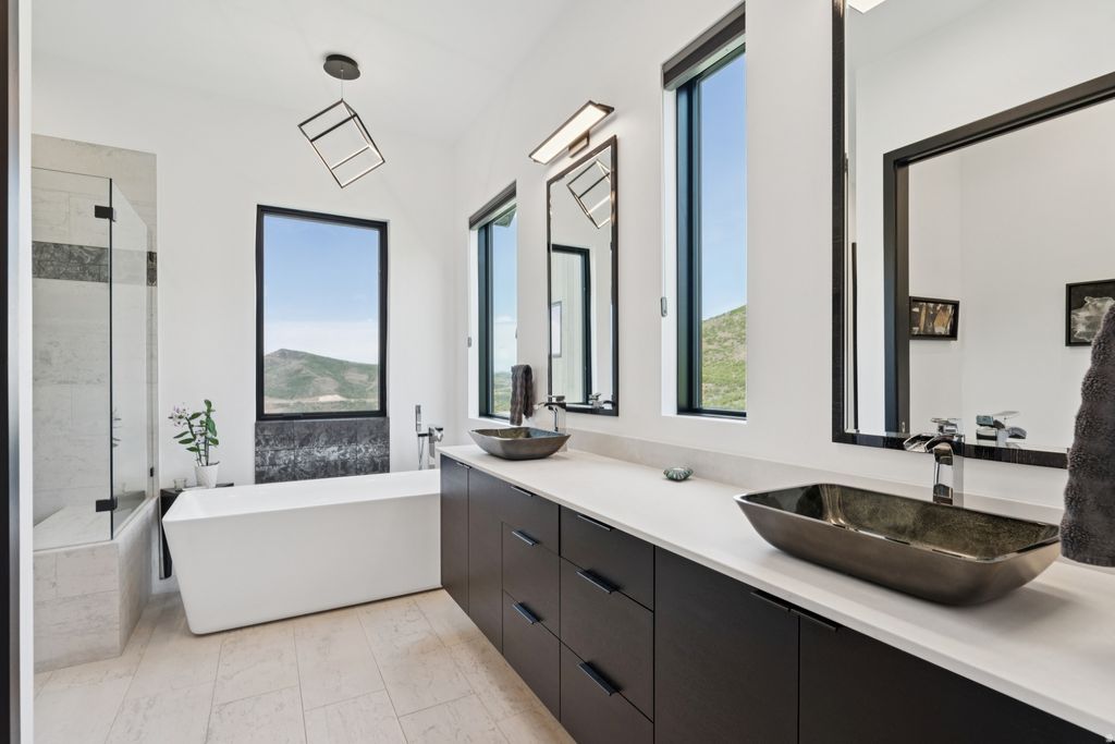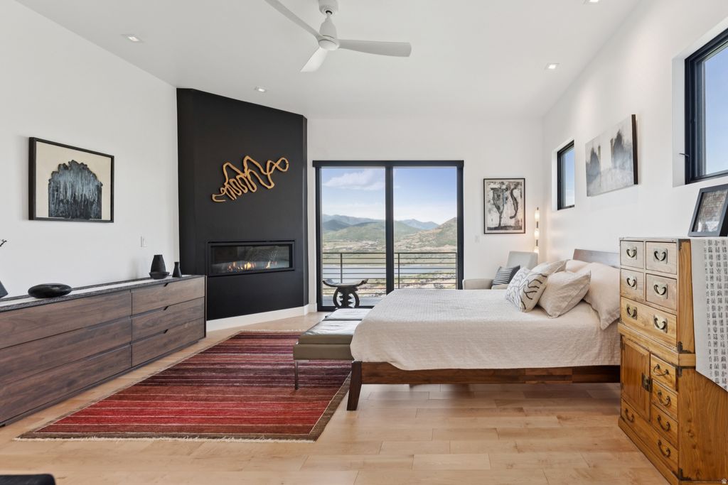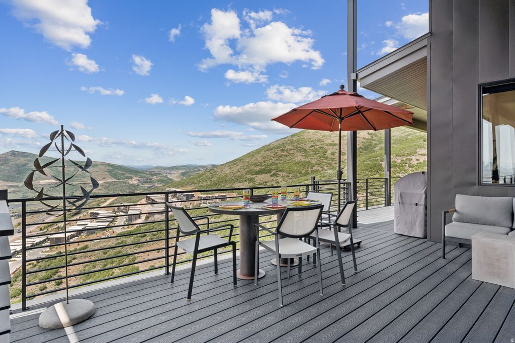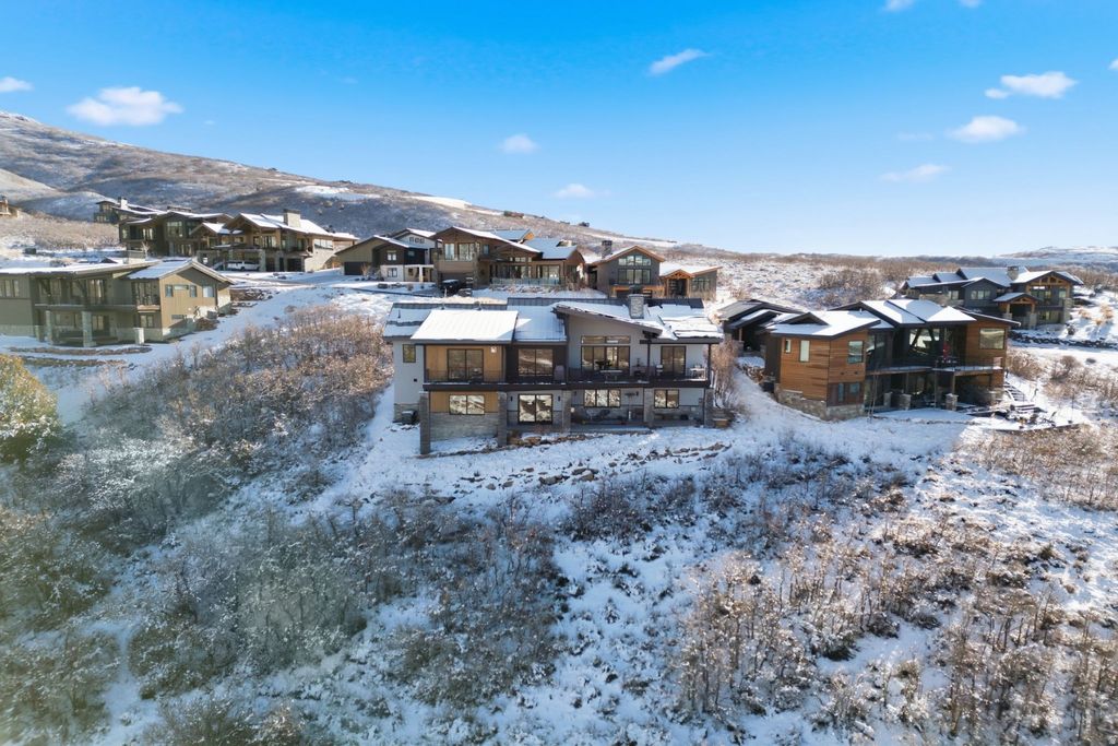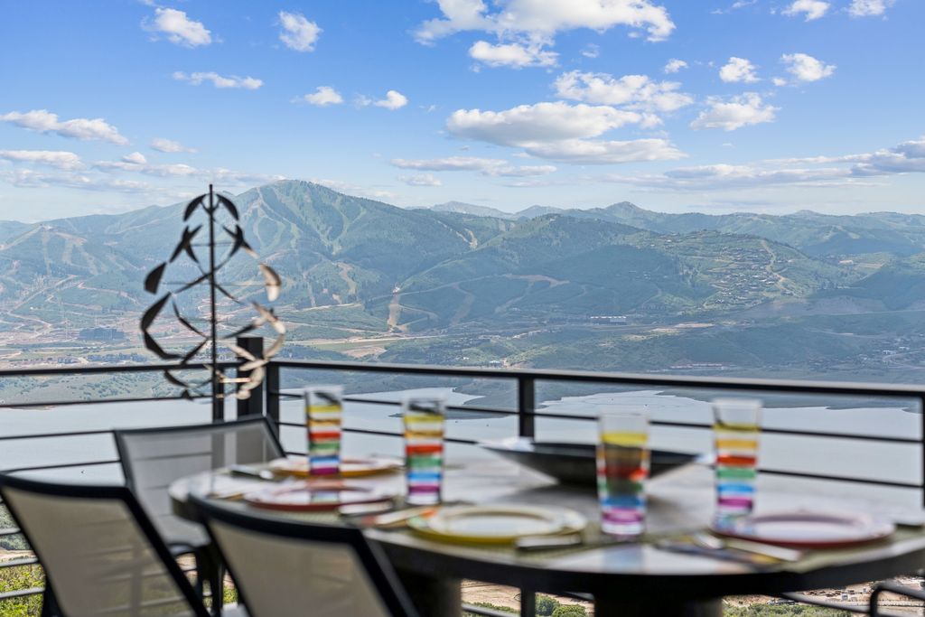 Perched above the Jordanelle Reservoir in the Soaring Hawk community, this architectural masterpiece by Jorgenson Builders captures sweeping, unobstructed views of Mt. Timpanogos and the iconic ski slopes of Deer Valley and Park City. Every detail of this sanctuary reflects refined mountain luxury, designed for effortless single-level living with soaring ceilings, walls of glass, and seamless indoor-outdoor flow. The great room unfolds to dramatic vistas, while the gourmet kitchen impresses with premium Dacor appliances, a Wolf cooktop, and an elegant butler's pantry featuring a warming drawer, upright freezer, drawer microwave, and dishwasher-tailored for sophisticated entertaining. The primary suite is an intimate retreat, complete with a gas fireplace, private deck access, and a spa-worthy bath offering a soaking tub, glass-enclosed shower, dual vanities, and a spacious walk-in closet. The lower level offers a generous second living space with its own gas fireplace, perfect for gatherings or quiet evenings. Plans are available upon request to easily add an additional bedroom and bathroom in the lower level, offering flexible expansion potential for future needs. Clad in zinc, stone, stucco, and cedar, with a standing-seam metal roof, Pella Low-E windows, and Trex decking, the home is engineered for timeless beauty with minimal upkeep. Smart-home innovations include motorized blinds, Tekmar driveway and entrance snowmelt, and Rainbird irrigation. A solar roof system paired with a Tesla Powerwall delivers sustainable energy and backup power, while the heated garage has two EV charging outlets. This is a residence where elegance meets innovation-minutes from world-class skiing, boating, hiking, golf, and Park City's celebrated dining and nightlife.