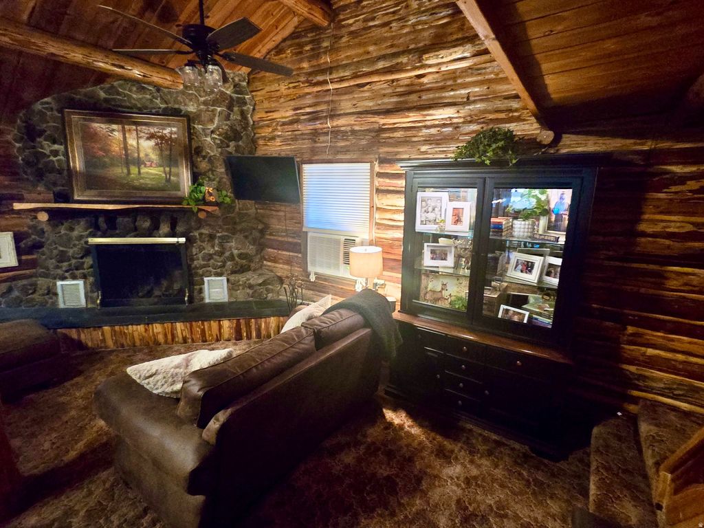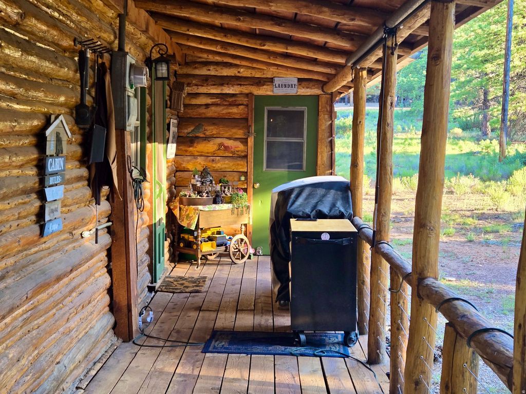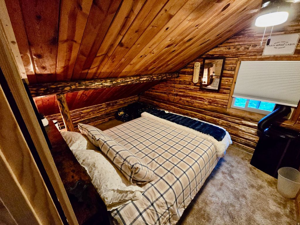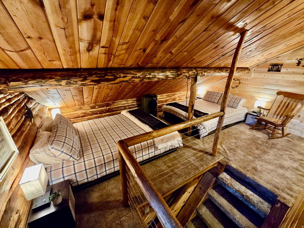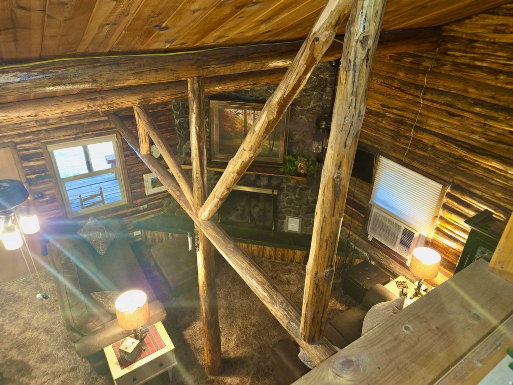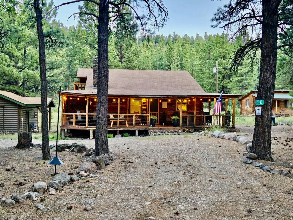 Escape the noise in this authentic log cabin nestled among the pines of the Yellow PineMammoth Creek community. Set on a rare level lot, this inviting retreat features real log construction, a wood-burning fireplace, vaulted ceilings, and warm living spaces that capture the essence of true mountain living. Recent improvements reflect thoughtful care and pride of ownership, including new double-pane windows installed in 2024, fresh exterior stain in 2024, and a new metal skirt added in 2025. The main level features a spacious primary bedroom and full bath, along with a new large-capacity AC window unit to keep things cool during warmer months. Upstairs, you'll find a second private bedroom, a loft space, and a second AC unit for added comfort. The loft opens to a second-story deck, an ideal spot to enjoy evening drinks, take in forest views, or watch wildlife wander through the property. The kitchen offers generous counter space and a dining bar for easy meals, while laundry is conveniently located on the main floor. Covered decking on the main level invites slow mornings with coffee, quiet afternoons, and relaxed evenings surrounded by nature. A detached 400-sf garage with double swing doors provides ample space for storage, tools, or outdoor gear. A new septic tank was installed in 2021. Offered furnished with nearly new furnishings, this cabin is turn-key and ready for immediate enjoyment. Seasonal summer water is supplied to the cabin from a community well, along with two additional water storage tanks totaling 825 gallons, helping extend your time in the mountains beyond the summer season. Walk to Mammoth Creek to fish or explore, enjoy miles of nearby national forest trails, or simply unplug and recharge on this quiet, private dead-end road surrounded by fresh mountain air. This is not a suburban home-it's a true mountain cabin, ideal for those seeking peace, quiet, and a genuine connection to nature.