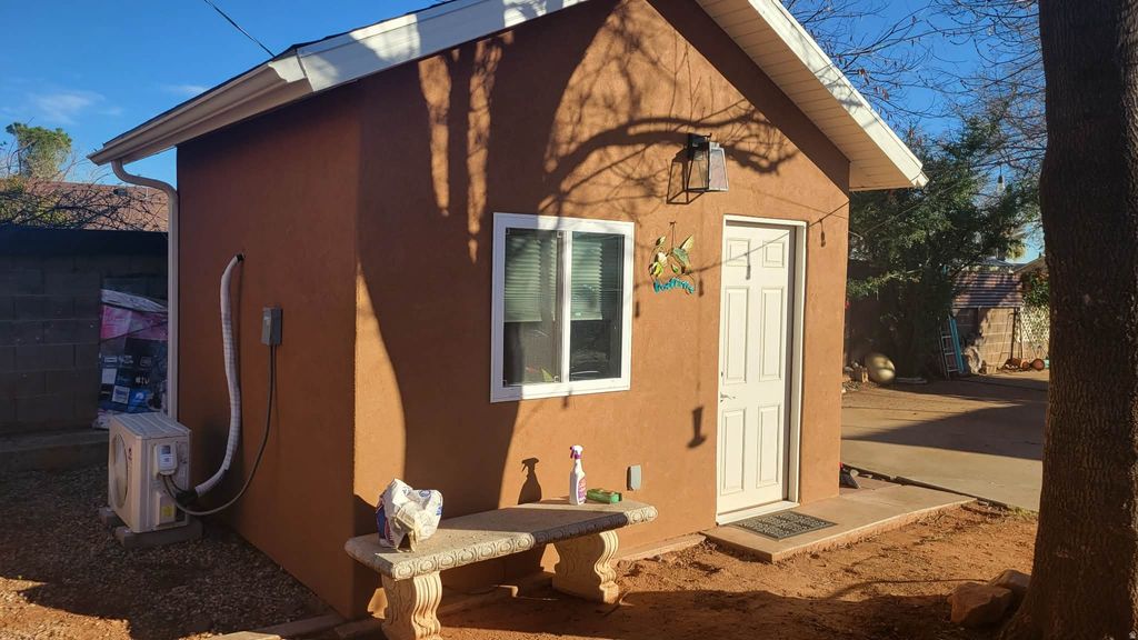 Peaceful Oasis with Private Casita in Ivins Discover the ultimate desert retreat nestled in the heart of Ivins, Utah. This charming residence offers a seamless blend of indoor comfort and lush outdoor living, all framed by the breathtaking silhouette of Southern Utah's iconic red cliffs. The interior of the home is meticulously designed for both functionality and privacy and ease of of possible expansion. A unique highlight is the primary suite's private exterior entrance, offering a seamless transition to the backyard-perfect for enjoying a quiet morning coffee on the patio or establishing an independent multi-generational living arrangement. For those seeking even more flexibility, the detached casita serves as a premier feature of the property. Whether you envision a professional home office, an inspiring art studio, or high-end guest quarters, this space provides the separation and quiet today's homeowners crave. Shady mature trees, vibrant rose bushes, and a variety of producing fruit trees. A dedicated BBQ and Dutch oven station designed for authentic outdoor dining. Multiple outdoor fire pits perfect for gathering under Ivins' renowned dark skies. Practicality meets convenience with an oversized wrap-around driveway. This expansive layout provides effortless maneuvering and ample parking for guests, recreational toys, and large RVs. This property captures the true essence of Ivins living, scenic, serene, and thoughtfully designed for a relaxed lifestyle. Don't miss your chance to own this rare desert gem! Call for your private tour today! Buyer to verify all information.