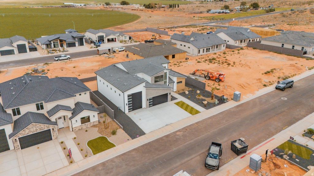 Full Custom Home Near Sand Hollow~ 360 Degree Landscaping~ ANOTHER ONE BY BIG ROCK HOMES in the sought-after Sand Hollow Village area blends modern comfort with the ultimate recreational lifestyle. This home has a massive 52-FOOT DEEP RV GARAGE (12' wide x 14' tall door)! Inside, you'll find an open-concept layout with LUXURY FINISHES, spacious bedrooms, and LARGE BACKYARD WITH ROOM TO ADD A POOL! This property comes equipped with premium SMART HOME features including 3 wired in insecurity cameras and a door bell camera. Just minutes from Sand Hollow Reservoir, Sand Hollow Golf Course, the sand dunes, and Zion National Park, you're surrounded by year-round adventure - boating, biking, hiking, off-roading, and more. Contact listing agent for PRIVATE SHOWINGS.