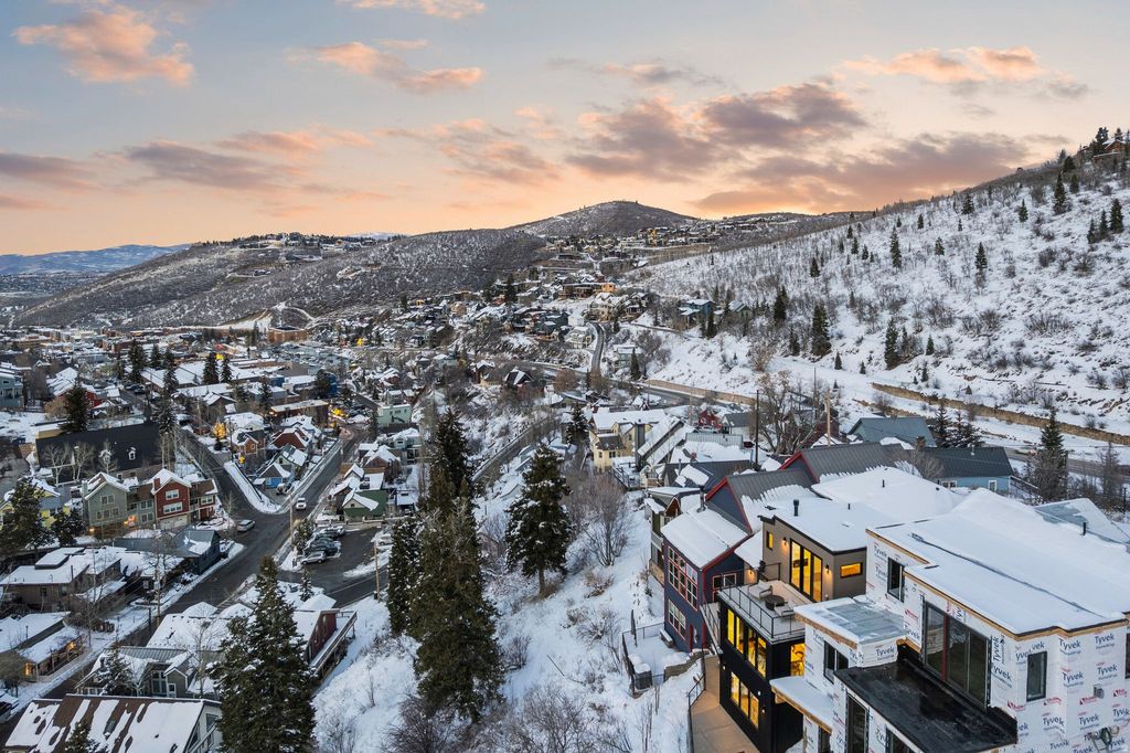 Perched above Historic Main Street in a quiet Old Town setting, this newly constructed residence offers refined mountain living with exceptional privacy, south facing views up and down the valley, abundant natural light, and easy walkability to the heart of Park City. Elevated above town, the home provides a true sense of separation while remaining moments from Old Town's dining, shopping, and entertainment. Spanning 3,030 square feet, it blends modern architecture with warm, livable spaces to create a private mountain retreat. The main living level features an open concept great room where expansive windows frame mountain, valley, and town views while maintaining privacy from neighboring homes. The seamless connection between the living area, dining space, and chef's kitchen supports both daily living and entertaining. The kitchen is equipped with premium appliances, custom cabinetry, and a generous island that anchors the space. The primary suite is a secluded sanctuary with scenic outlooks, a spa inspired bath with a soaking tub and walk in shower, and curated high end finishes. A private heated snowmelt balcony extends the suite outdoors, offering unmatched south facing views from sun up to sun down. Three additional guest suites, each with its own en suite bath, are thoughtfully separated to ensure comfort and discretion. Outdoor living is a defining feature, with three heated decks providing ample space for year round enjoyment and entertaining while remaining visually and physically removed from surrounding properties. Located minutes from Deer Valley Resort and steps from Main Street, the home also offers immediate access to hiking and biking trails directly from the front door. Approved for nightly rentals and offered with a furniture package for a turnkey experience, this property combines luxury ownership, income potential, privacy, and a premier Old Town location. Square footage figures are provided as a courtesy estimate only. Buyer is advised to obtain an independent measurement.