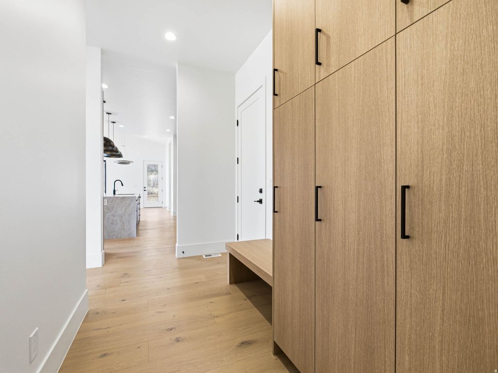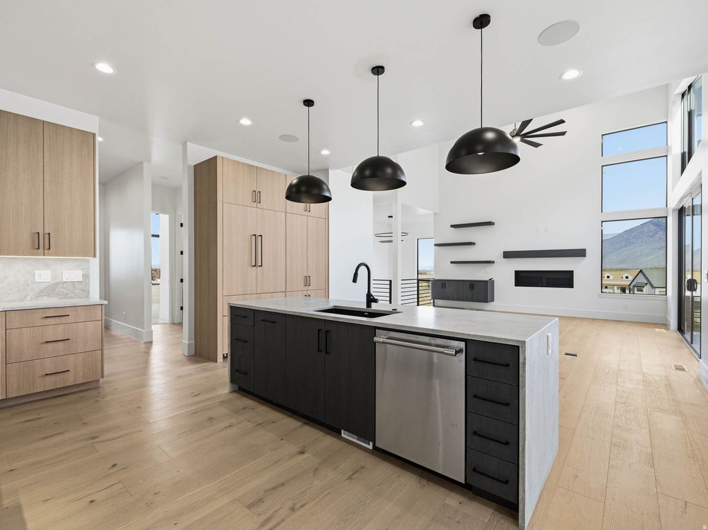 This brand new - just completed modern contemporary house offers impressive mountain views, incredible floor plan with large windows, bright open floorplan and located in a spectacular neighborhood in beautiful south east Mapleton. Loaded with several extras- To name a few.. Hardwood floors throughout main living areas, quartz countertops with full backsplash in kitchen, Sonos system, roughed-in for Generac generator, sink and storage cabinets in garage, 10' tall basement with walkout, Trim Lights, large spacious deck and covered patios. Enjoy hiking, biking, or riding your offroad toys with access right from your backyard. This home is ready for an immediate occupancy. Call Troy Shaw Broker/Builder with any questions. We can finish quickly any basement build out to clients liking/budget. Buyer to verify all info.