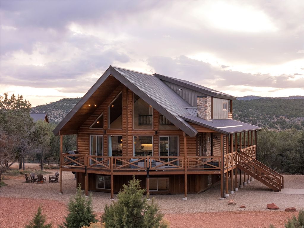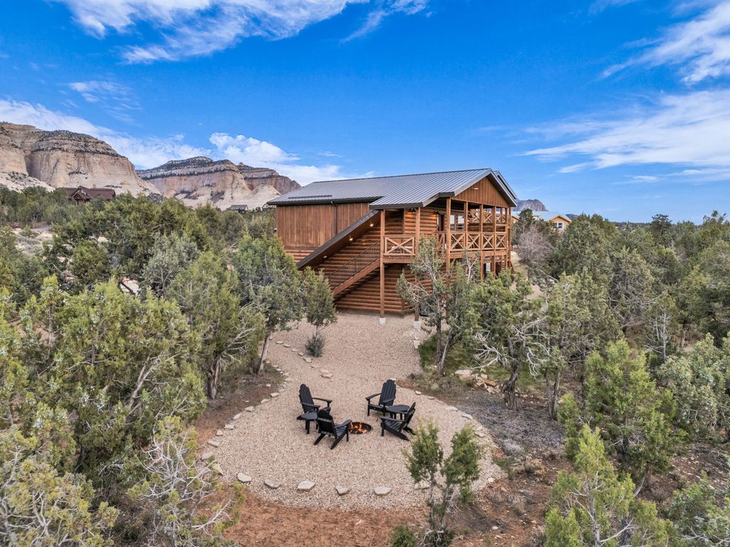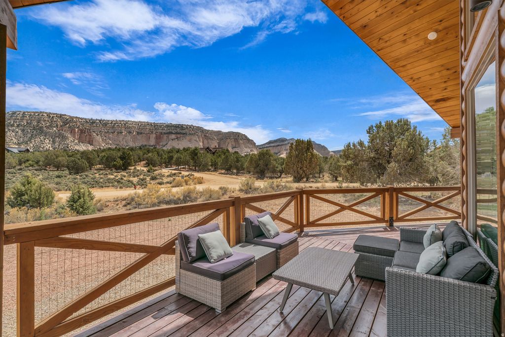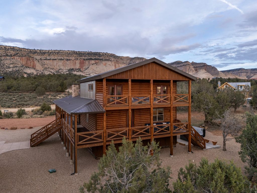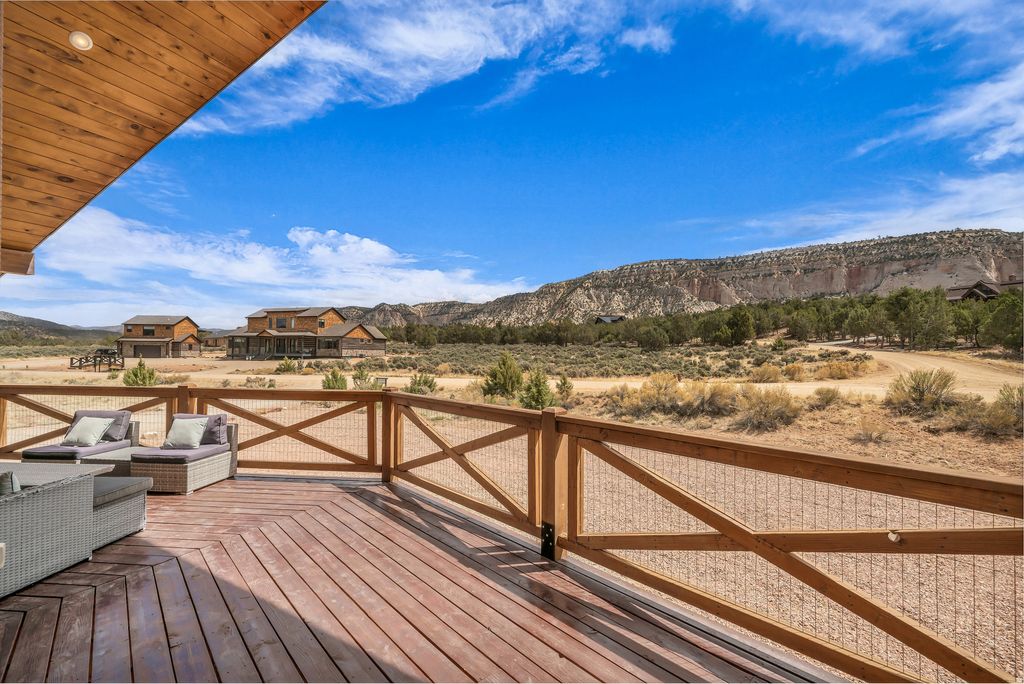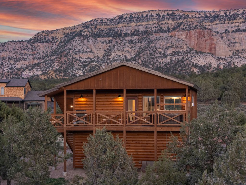 Welcome to your extraordinary vacation retreat and investment opportunity, just a 25-minute drive from Zion. This property features a spacious 5-bedroom, 3.5-bathroom main house, complemented by a separate 2-bedroom, 1-bathroom apartment above the detached garage, both independently rentable for maximum revenue potential. Prepare to be captivated by the stunning surroundings, views of the pink coral cliffs and hay fields in the valley below. Step inside to discover a haven of comfort and style, starting with the expansive great room featuring vaulted ceilings and gas fireplace. The open kitchen, with a large granite island is perfect for hosting family dinners or gatherings of friends. Retreat to the luxurious primary on the main level, boasting a spa-like bath and private access to the outdoors. Downstairs, the basement game room offers additional space to relax, with two bedrooms and a full bath. Upstairs, a loft area features two more bedrooms and another full bath, ensuring plenty of room for everyone to spread out and enjoy. Fully furnished and turnkey ready, this property offers a seamless transition into vacation rental ownership or for those seeking a permanent residence. Buyer to verify all.