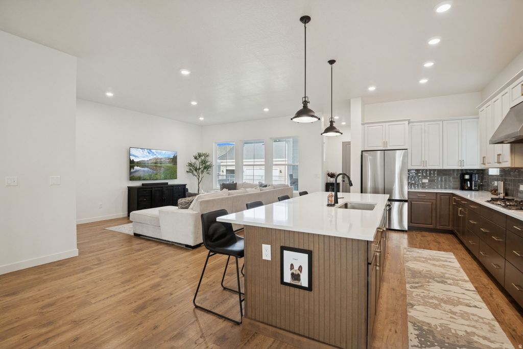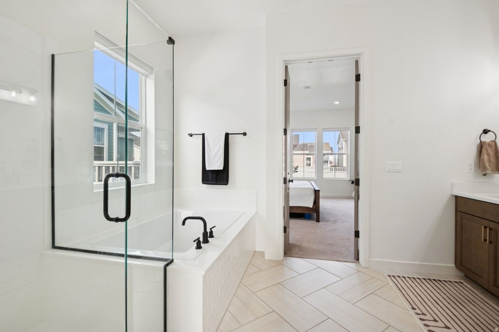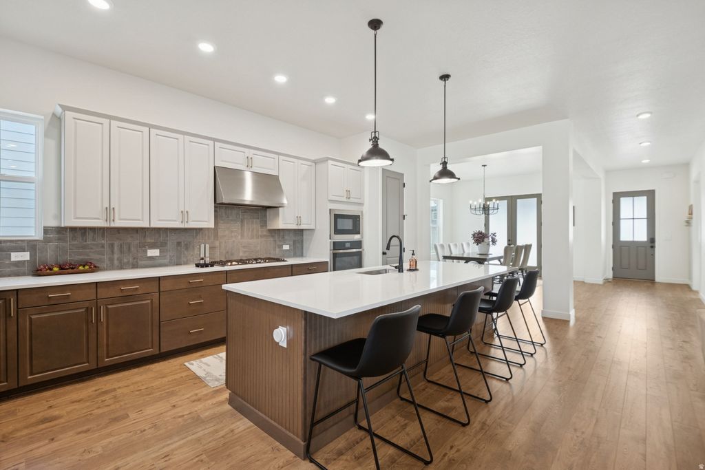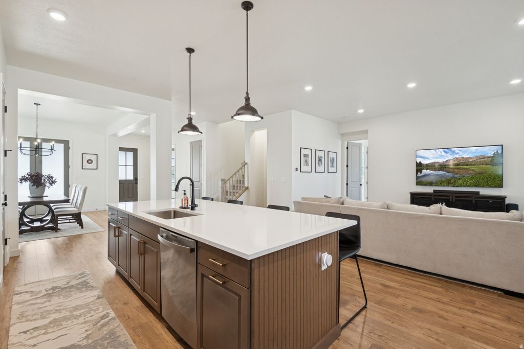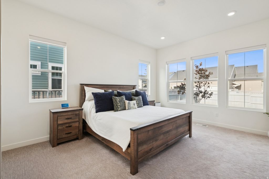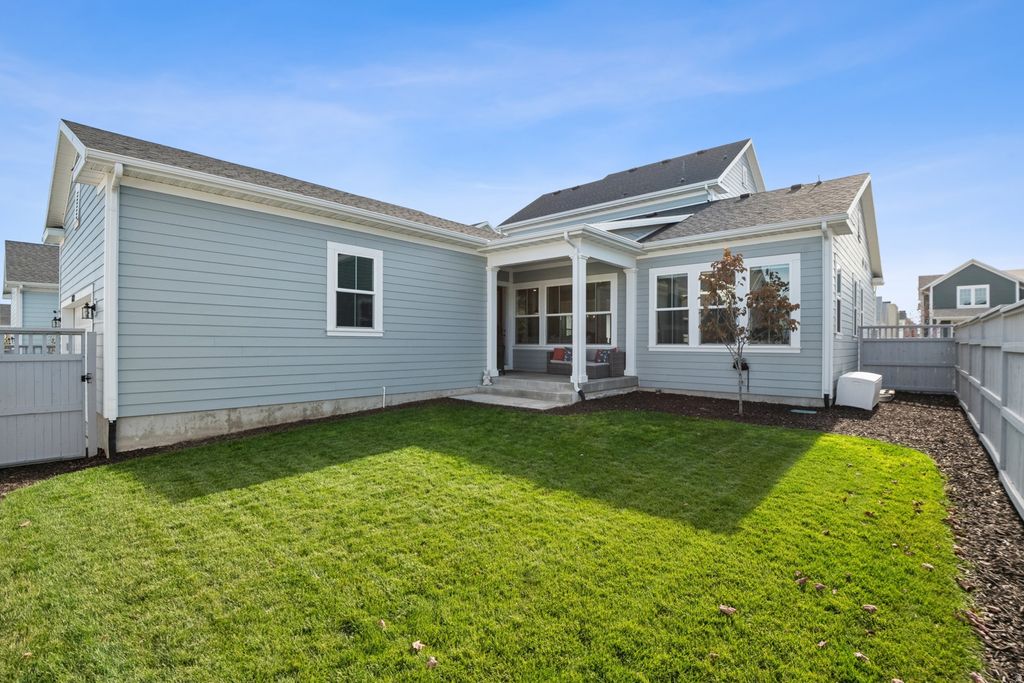 Skip the new construction process and come see this immaculate home, built in 2023, in Daybreak's premier Ascent community. Boasting 4,433 sq. ft., this 3-bedroom, 2.5-bathroom residence has been meticulously maintained to a better-than-new standard. This beauty features designer interiors with an open-concept family room, 9ft ceilings, and a gourmet kitchen anchored by a gorgeous 10ft quartz island. Enjoy main-level living with the convenience of a primary suite and laundry room on the main floor. Additionally, you'll find a private office with elegant French doors, a spacious formal dining area perfect for hosting, and a half-bath for guests. Upstairs, you will find a bonus flex space, two additional bedrooms, and another full bathroom! The exterior is fully landscaped with an automatic sprinkling system and a fully fenced, private backyard. This home also features a high-efficiency dual-zone HVAC system for consistent temperatures throughout. The expansive, unfinished basement offers unlimited growth potential. With plumbing already in place for a bathroom, you can easily add more bedrooms and a secondary living area to suit your lifestyle. Perfectly situated steps from the Daybreak Watercourse, you'll enjoy unparalleled access to Oquirrh Lake and miles of biking and walking trails. You are also close to top-rated schools, shopping, dining, TRAX, and the new Bees Stadium. Don't miss this opportunity-it's move-in ready and waiting for you! Square footage figures are provided as a courtesy estimate only and were obtained from county records. Buyer is advised to obtain an independent measurement and verify all information contained within.
