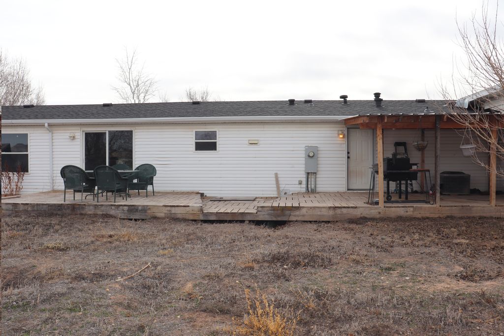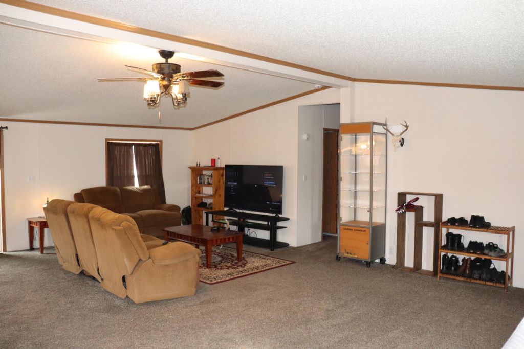 Roomy manufactured home sitting on .28 of an acre with a large garage! This home offers a large living area giving an open-concept feel to it. The front and back yard are completely fenced. The attached garage has enough room for multiple vehicles and includes a drain pit. The back corner of the garage has room to place a workbench or to use for additional storage. The back corner has an accessible upstairs area as well for more usage. Buyer to verify all information.