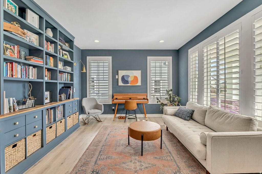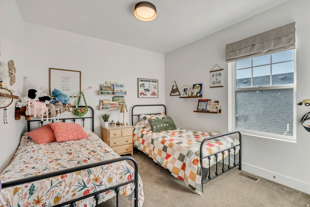 Welcome home to this beautifully updated 5-bedroom residence in the heart of Daybreak. Perfectly situated within walking distance to Oquirrh Lake, Harmons, and multiple parks-including the beloved Brookside Park-this home offers the ideal blend of convenience, comfort, and community living. Enjoy a large covered front porch and plantation shutters throughout the home, adding timeless charm and style. Inside, you'll find new hard flooring throughout the main level, a stunning fireplace anchoring the living space, and a charming library/office ideal for work or relaxation. The kitchen shines with new appliances, quartz countertops, a classic subway tile backsplash, updated lighting and hardware, and abundant cabinetry. Thoughtfully designed with function and style in mind, the home offers exceptional storage throughout, including generous mudroom cabinets, a large dedicated storage room, and multiple oversized closets. The spacious primary suite is a true retreat, featuring a luxurious bath with Euro glass shower, separate soaking tub, and an impressive walk-in closet. Additional highlights include a two-car garage with EV charger and added storage alcove. Ideally located just minutes from SoDa Row, Bangerter Highway, Mountain View Corridor, U of U Health Center, TRAX, Daybreak Library, and The District's shopping, dining, and entertainment. HOA amenities include high-speed internet, four pools, fitness center, paddleboard and kayak access at Oquirrh Lake, extensive parks and trails, sport courts, and year-round community events. The home also features several raised garden boxes, perfect for those who enjoy gardening or farm-to-table living. This move-in-ready home is a rare opportunity in one of Daybreak's most desirable communities