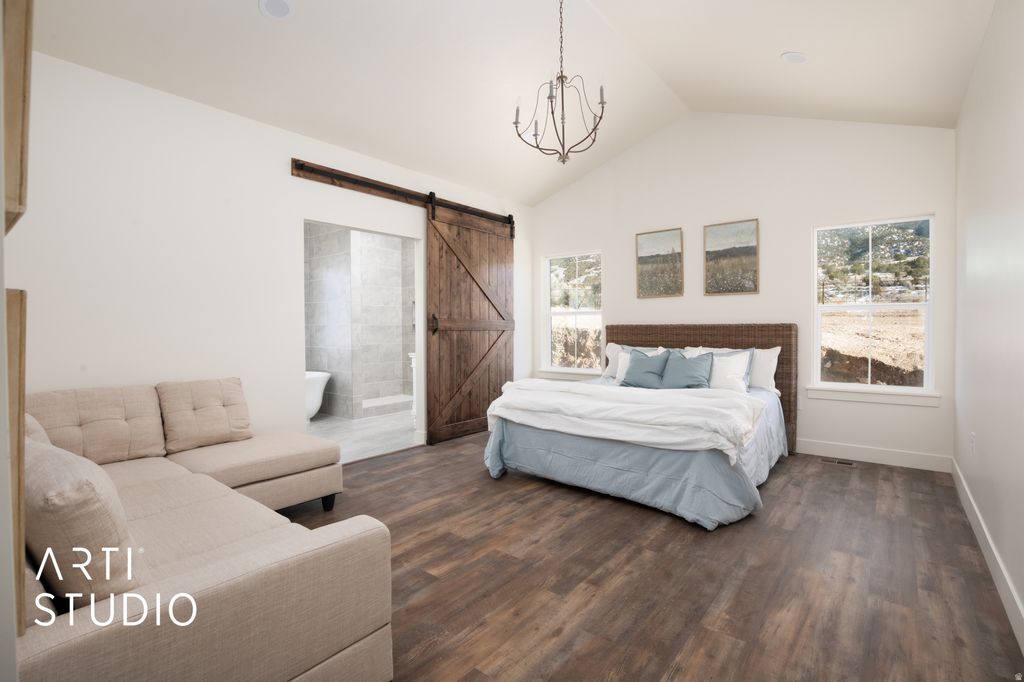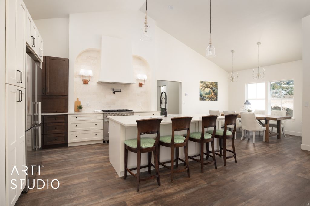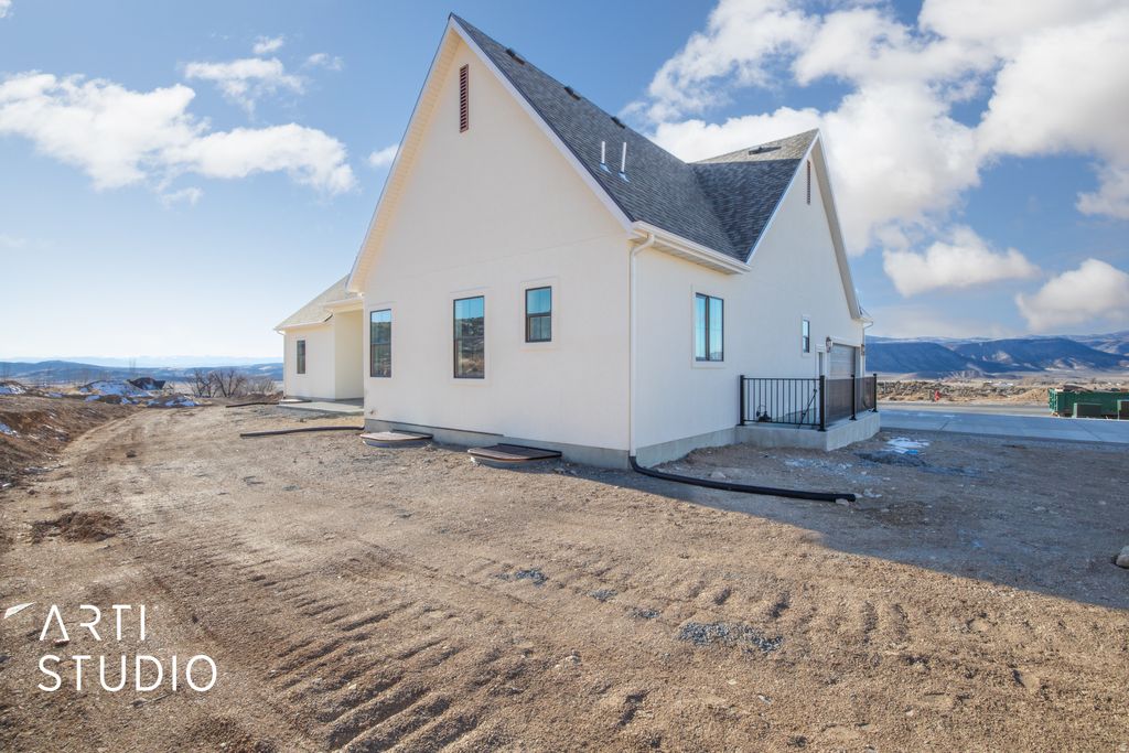 Step through the arched double doors and you'll immediately feel the thoughtful European-inspired design that sets this Manti Crystal Springs Model home apart. Vaulted ceilings, arches throughout and a seamless layout help create this timeless feel. The kitchen blends style and function with little touches like the pot filler or the oversized pantry next to the hidden coffee bar that really take form and function to the next level. The Primary Suite is your own private retreat continuing the vaulted ceilings leading into the spa inspired bathroom with separate vanities, walk in shower, a chandelier over the soaking tub leading to the large walk-in closet. The unfinished basement already has a roughed in kitchen and bathroom for an income generating separate apartment with its own entrance or additional living space. A water share is included as well as front yard landscaping and is scheduled to be completed this spring. Seller financing available for qualified buyers, NO HOA.
