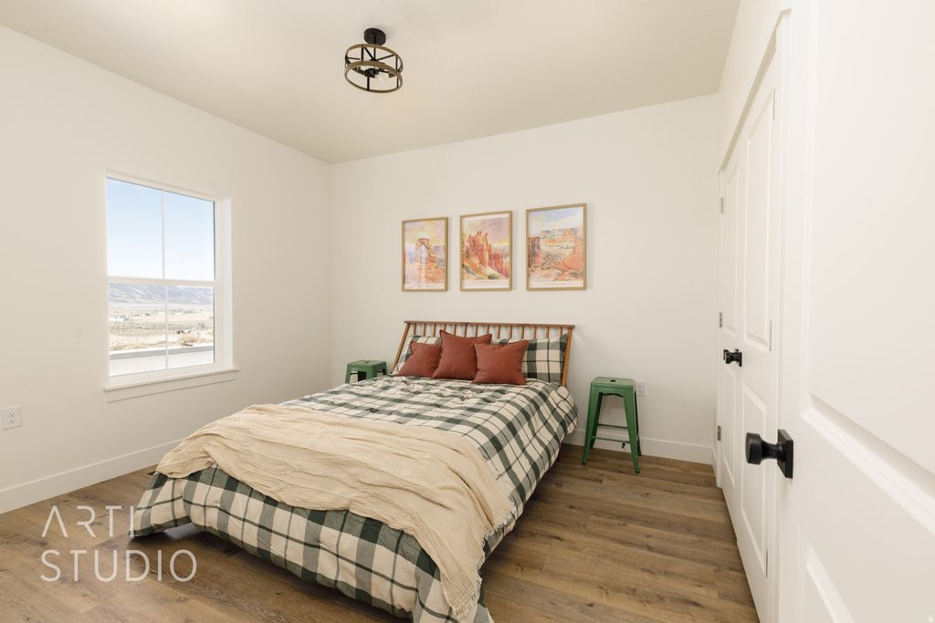 If you've been waiting for something truly special, this is your chance to move right in to our Manti Crystal Springs Model home. Double doors, vaulted ceilings, and a moody mixed use space paired with a seamless layout help create an eclectic feel. The kitchen blends style and function with little touches like the pot filler or the oversized pantry next to the hidden appliance garage that really take form and function to the next level. The Primary Suite is your own private retreat continuing the vaulted ceilings leading into the spa inspired bathroom with separate vanities, walk in shower, a chandelier over the soaking tub leading to the large walk-in closet. The unfinished basement already has a roughed in kitchen and bathroom for an income generating separate apartment with its own entrance or additional living space. A water share is included as well as front yard landscaping and is scheduled to be completed this spring. Seller financing available for qualified buyers, NO HOA, Animal friendly.