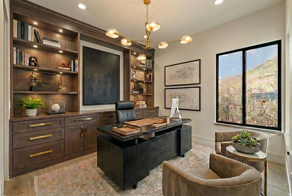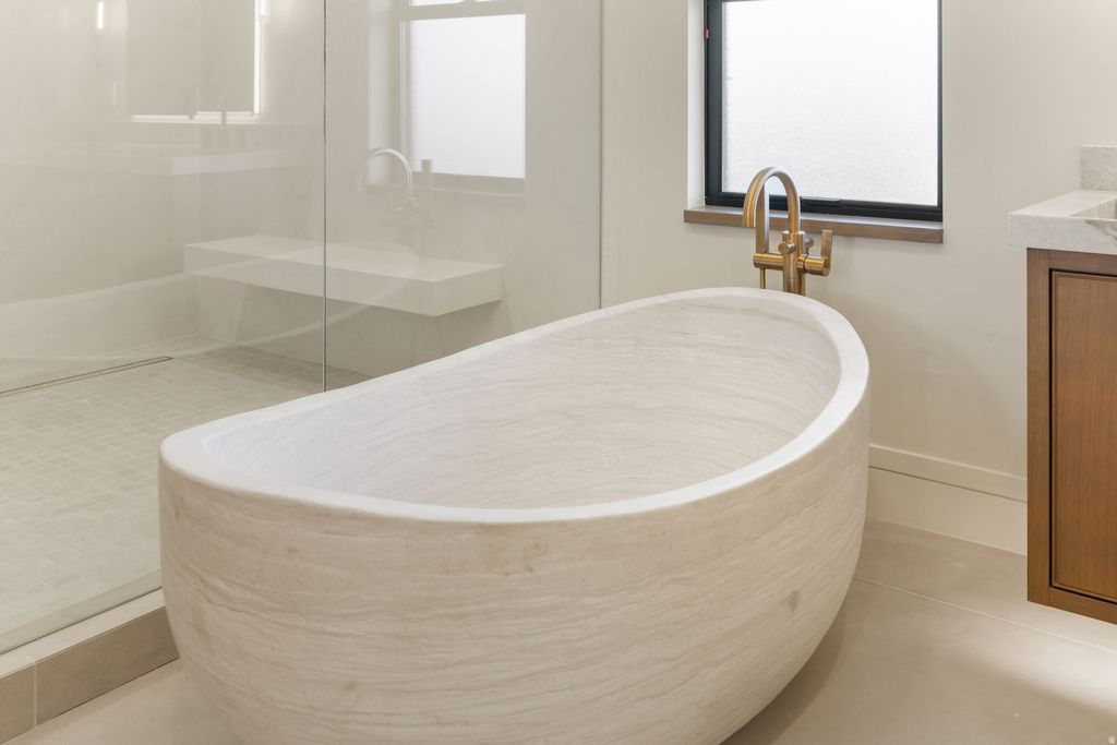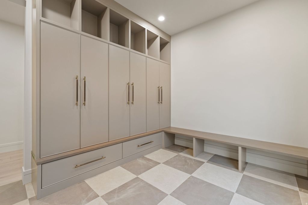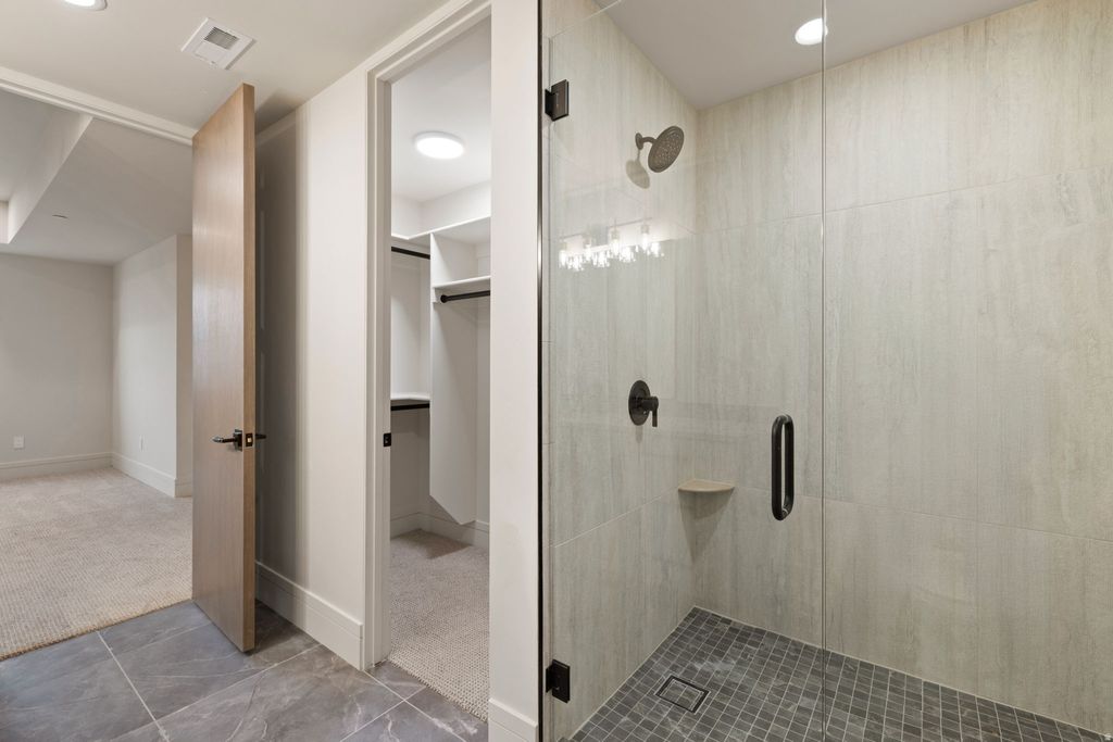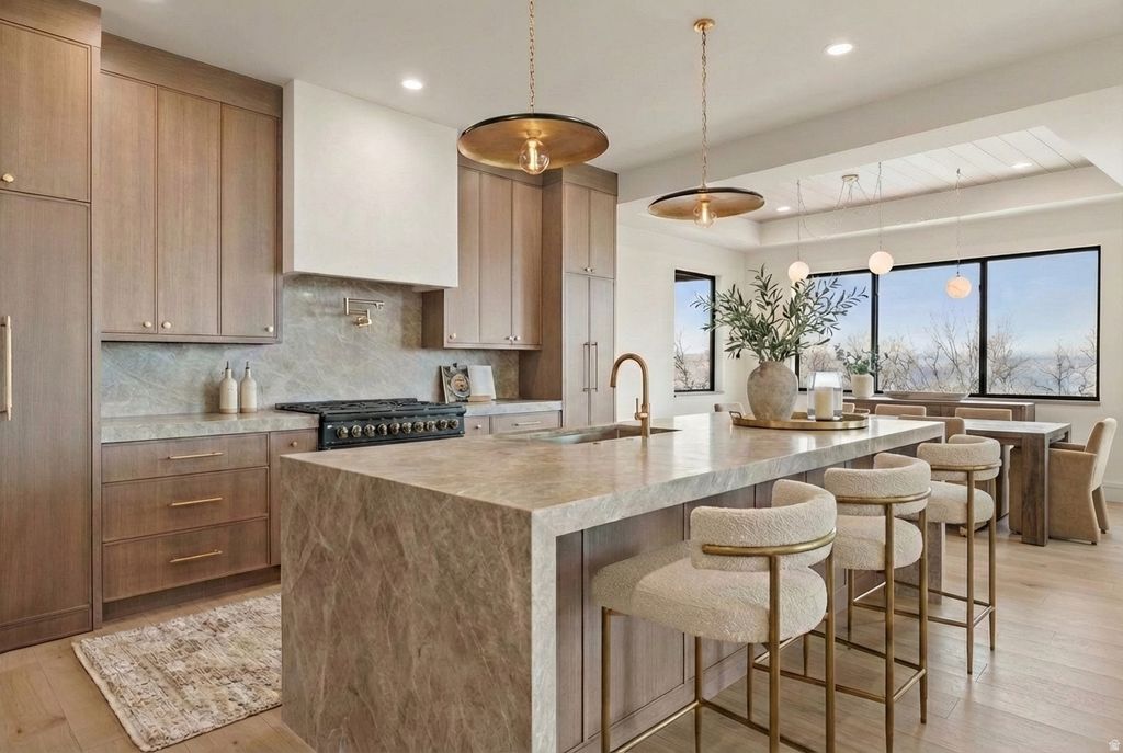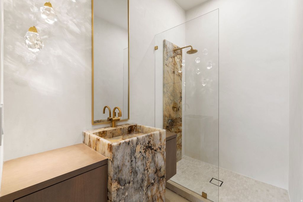 The Eagle Nest Estate | $4,795,000 - A brand new Mountain Modern masterpiece in Woodland Hills showcasing breathtaking lake, valley, and mountain views. Thoughtfully designed for unforgettable entertaining and elevated everyday living, this 11,062 square foot residence delivers rare scale, craftsmanship, and lifestyle amenities in one of Utah County's most sought-after settings. The main level features a grand great room anchored by a dramatic 22-foot stone/plaster fireplace, showpiece chandeliers, engineered European white oak flooring, and expansive sliding doors opening to a covered view deck that captures the entire valley. The chef's kitchen is extraordinary with Sub-Zero + designer grade appliances, a stunning 12' quartzite waterfall island, and a hidden pantry door leading to an impressive butler's pantry with floor-to-ceiling cabinetry, a second Sub-Zero refrigerator, pebble ice maker, sink, and dishwasher. Retreat to a spa-worthy primary suite with a private view deck, a custom walk-in closet with its own laundry, and a serene bath featuring a decorative mineral plaster steam shower with dual heads + rain head, freestanding solid marble tub, bidet, makeup station, Taj Majal integrated sinks and other luxury finishes. The upper level includes 5 additional bedrooms each with either an ensuite or a jack and Jill bath, a media/play room, a study area, and a second laundry. The walkout lower level is an entertainer's dream featuring a full second kitchen with a panel-ready Sub-Zero fridge and freezer, Patagonia quartzite countertops and backsplash, a theater room, workout room, 2 guest suites, and multiple covered outdoor living areas. A true standout feature: a finished subterranean indoor sport court-a half basketball court with hoop plus pickleball lines and net-creating an unforgettable year-round lifestyle amenity. Finished landscaping, a circular driveway, and abundant parking complete this exceptional offering. The home was just completed received Certificate of Occupancy on February 27, 2026. Schedule your private tour today. All data, including all measurements and calculations of are, is obtained from various sources and has not been, and will not be verified by broker or MLS. All information should be independently reviewed and verified for accuracy.