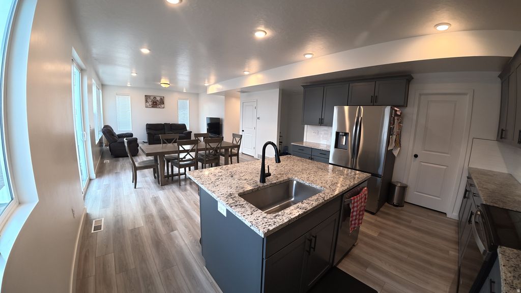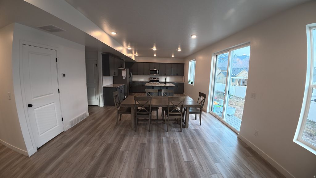 Imagine a Modern twostory home that balances clean architectural lines with warm, livable spaces. The exterior carries a modern profile-mixed materials, generous windows, and a threecar garage that blends seamlessly into the design. Inside, the main level opens into an airy, openconcept layout. The kitchen anchors the space with stone countertops, sleek cabinetry, and a large island that naturally becomes the gathering point. The living and dining areas flow without interruption, creating a sense of spaciousness that works just as well for quiet evenings as it does for hosting friends. Upstairs, three wellproportioned bedrooms offer privacy and comfort. The primary suite includes its own bath, while the remaining bedrooms share a full bathroom, and a convenient halfbath sits on the main floor for guests. The location adds a lifestyle element that's hard to beat. You can stroll to a nearby golf course, take a fiveminute drive to multiple trailheads for quick hikes, or head thirty minutes up the canyon to reach ski areas. With fast access to the interstate, commuting or weekend getaways stay easy.